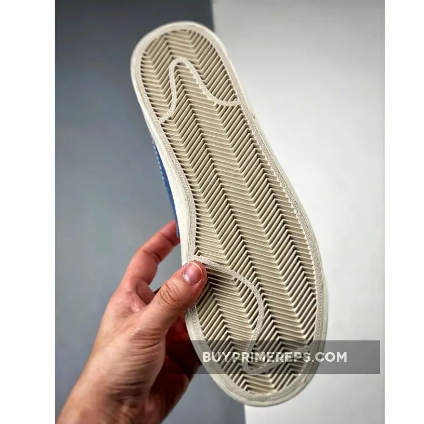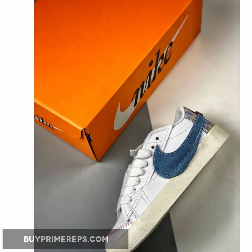 The upper of the Nike Blazer Low Jumbo Denim Swoosh is constructed from premium white leather with a natural grain. The leather is arranged in a panelled design, giving the shoe a deconstructed appearance. This not only adds visual interest but also allows for a comfortable and flexible fit.