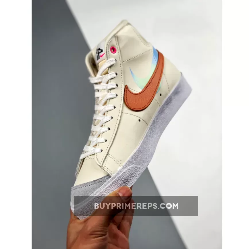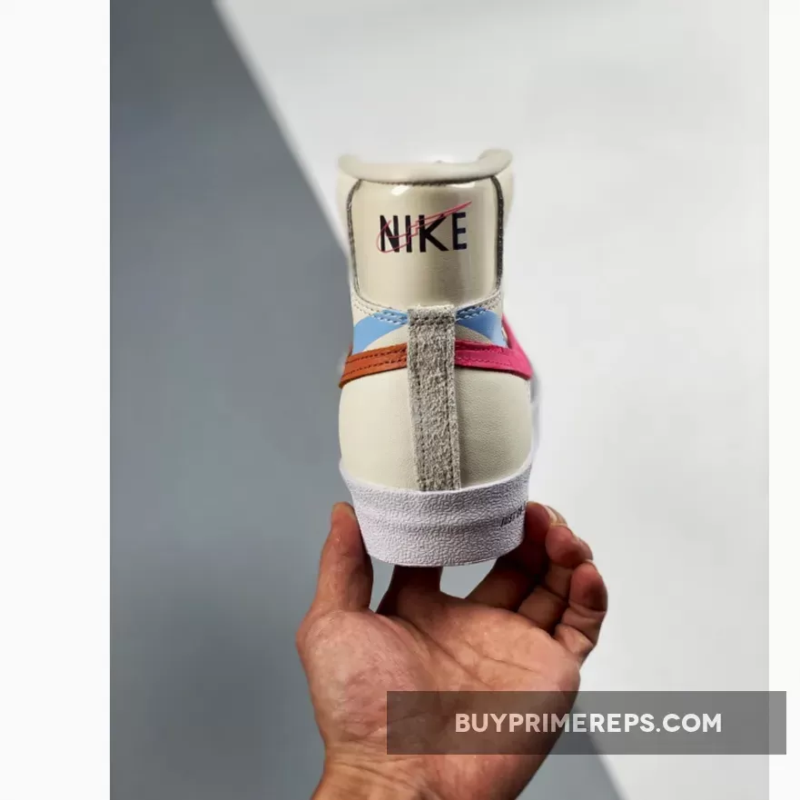 In terms of comfort, the Nike Blazer Mid 77 Shanghai Pack Pink Orange does not disappoint. It features a mesh padded tongue, providing cushioning and breathability. The White midsole adds a clean and classic look to the shoe, while the Blue translucent outsole adds a pop of color and completes the overall aesthetic.
