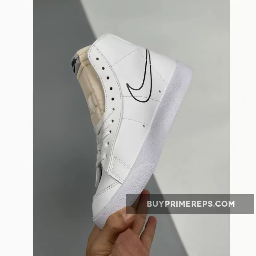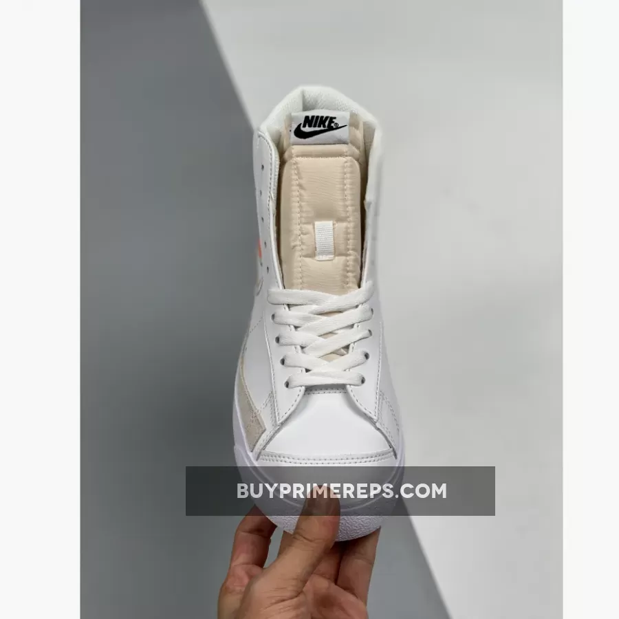 In terms of construction, the Blazer Mid 77 features premium leather throughout the upper, giving the shoe a luxurious and durable feel. The grey suede flaps on the sides of the forefoot add a touch of texture and visual interest to the design. The tongue tab is padded for added comfort, making this sneaker not only stylish but also suitable for all-day wear.