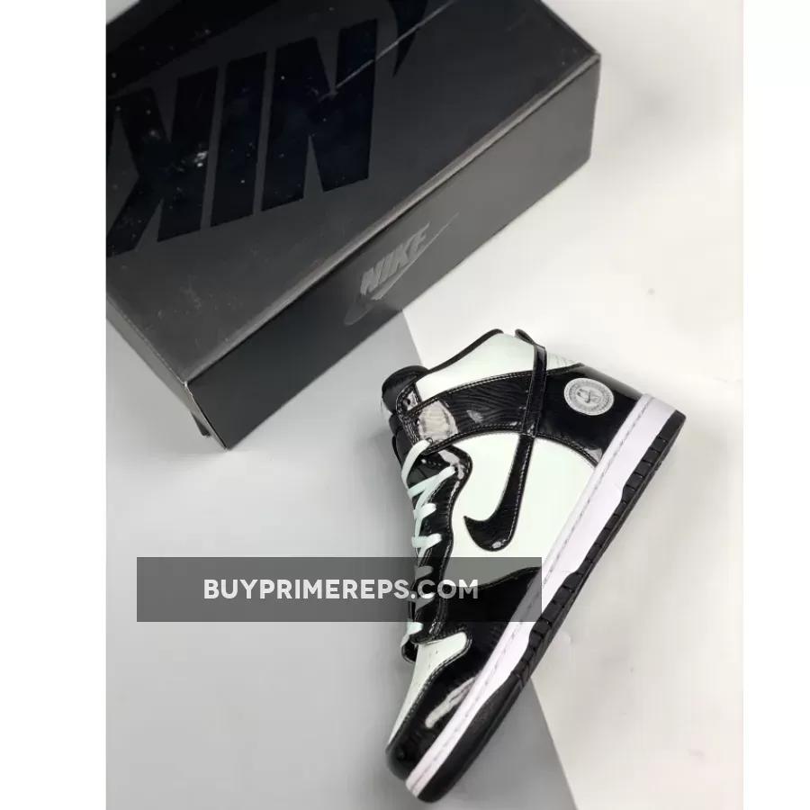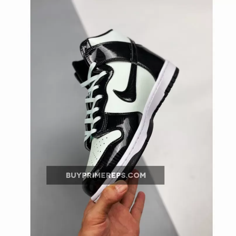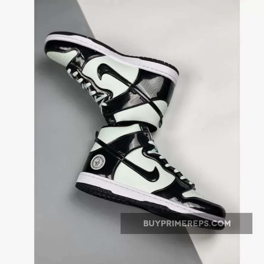 Part of Nike’s and Jordan Brand’s All-Star 2021 collection, the Nike Dunk High All-Star is dedicated to the 2021 NBA All-Star Game, which will be held in Indianapolis, Indiana. The shoe features a high-top silhouette reminiscent of the original Dunk, with a mint green leather upper that exudes a luxurious feel. The black patent leather overlays add contrast and a touch of elegance, especially on the Swoosh logo found on the quarter panels.