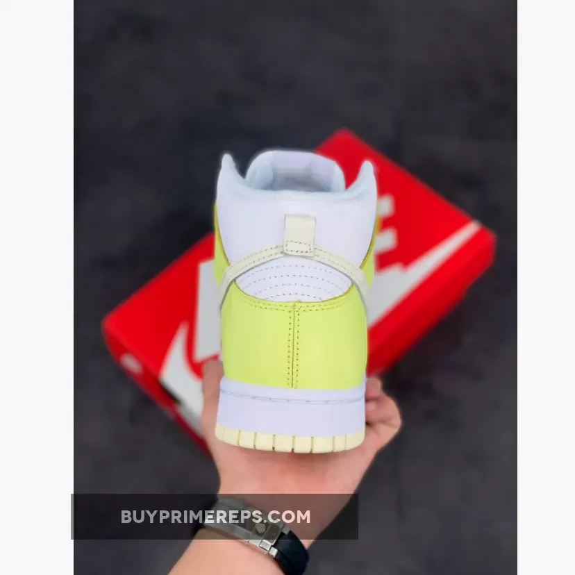 The Nike Dunk High Lemon Twist features a classic high-top construction, providing optimal support and comfort for your heels and ankles. The upper is crafted from super-smooth white leather, serving as a clean canvas for the striking color palette that adorns the shoe.
