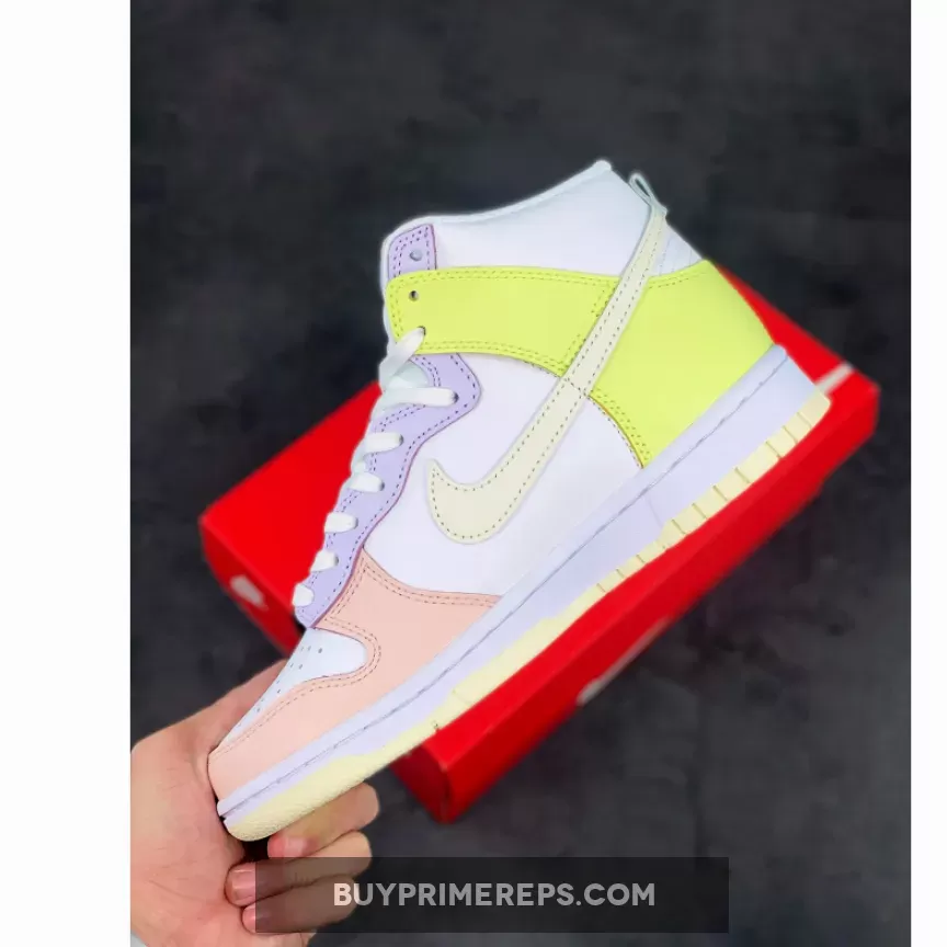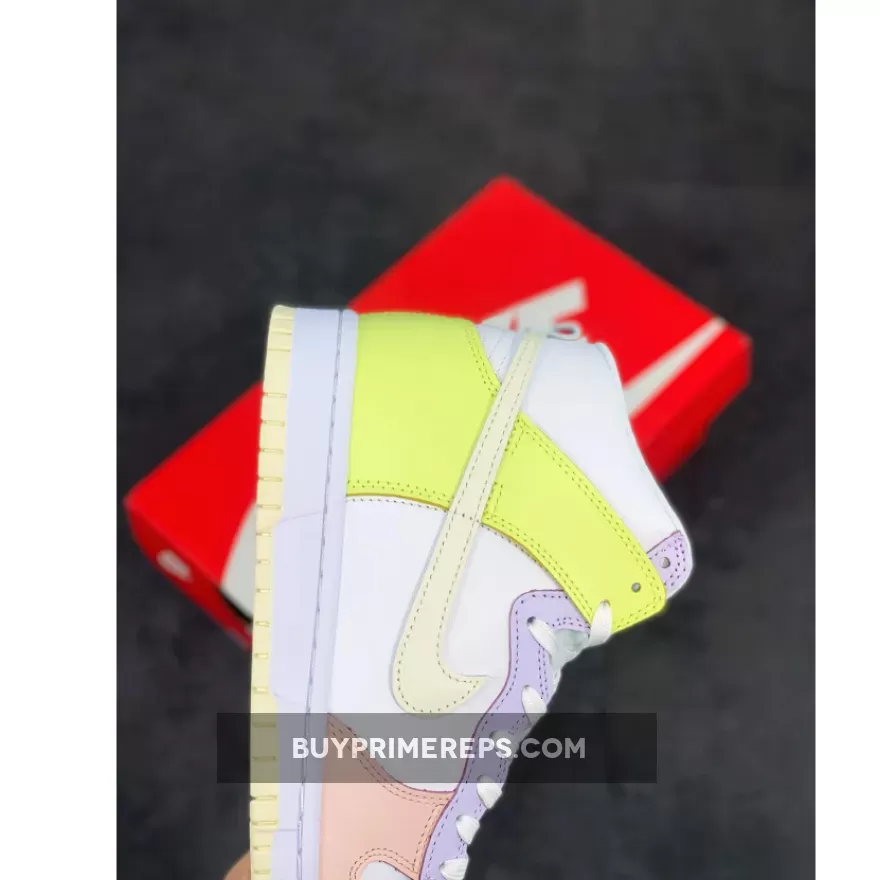 Introducing the Nike Dunk High Lemon Twist, a vibrant and eye-catching colorway that is perfect for the upcoming spring and summer seasons. With its unique blend of pastel hues, this sneaker is sure to turn heads wherever you go.