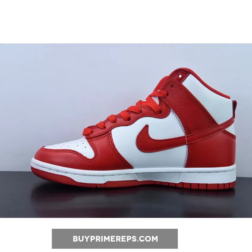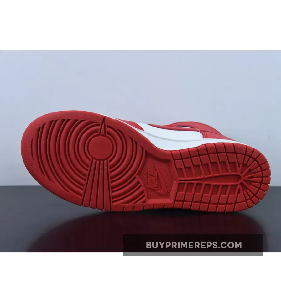 The Nike Dunk High University Red is a high-top silhouette, adding an extra level of style and support. The white midsole and outsole perfectly complement the red and white upper, completing the overall look of the shoe.