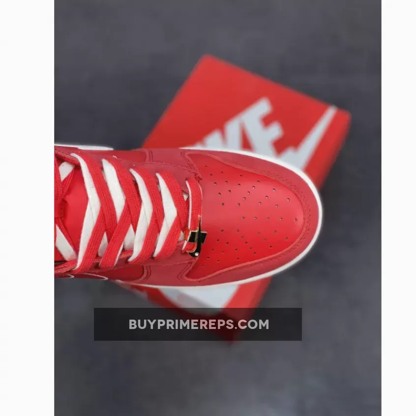 To complete the look, the Nike Dunk High First Use University Red comes with a double set of laces, giving you the option to customize your style. Metallic Gold diamond-set Swoosh lace locks add a touch of luxury and elevate the overall design. A white midsole and a red rubber outsole provide a clean and classic finish.