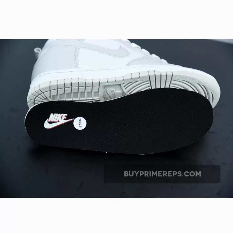 To ensure optimal comfort, the Dunk High Retro Vast Grey White is equipped with a white rubber midsole. This midsole not only provides cushioning and support but also houses Nike Air technology, making these retro sneakers incredibly comfortable to wear for extended periods.
