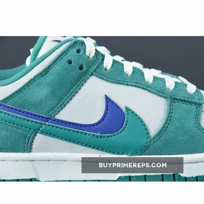 The standout feature of the Nike Dunk Low SE 85 “Bone Green” is its luxurious suede upper. The soft suede material adds a touch of elegance to the shoe and elevates its overall aesthetic. The color palette of the sneaker is a perfect blend of cool and complementary hues. The upper is predominantly adorned in a pale grey “Bone” color, providing a neutral base for the design. The minty-green hue wraps around the mudguards, lacing systems, and heels, adding a refreshing pop of color to the shoe.
