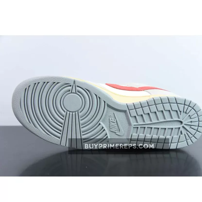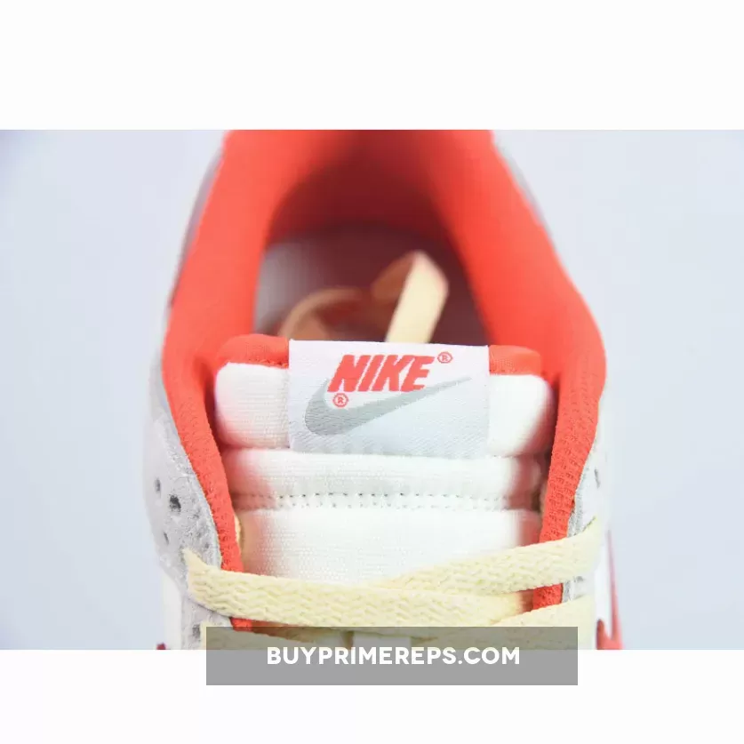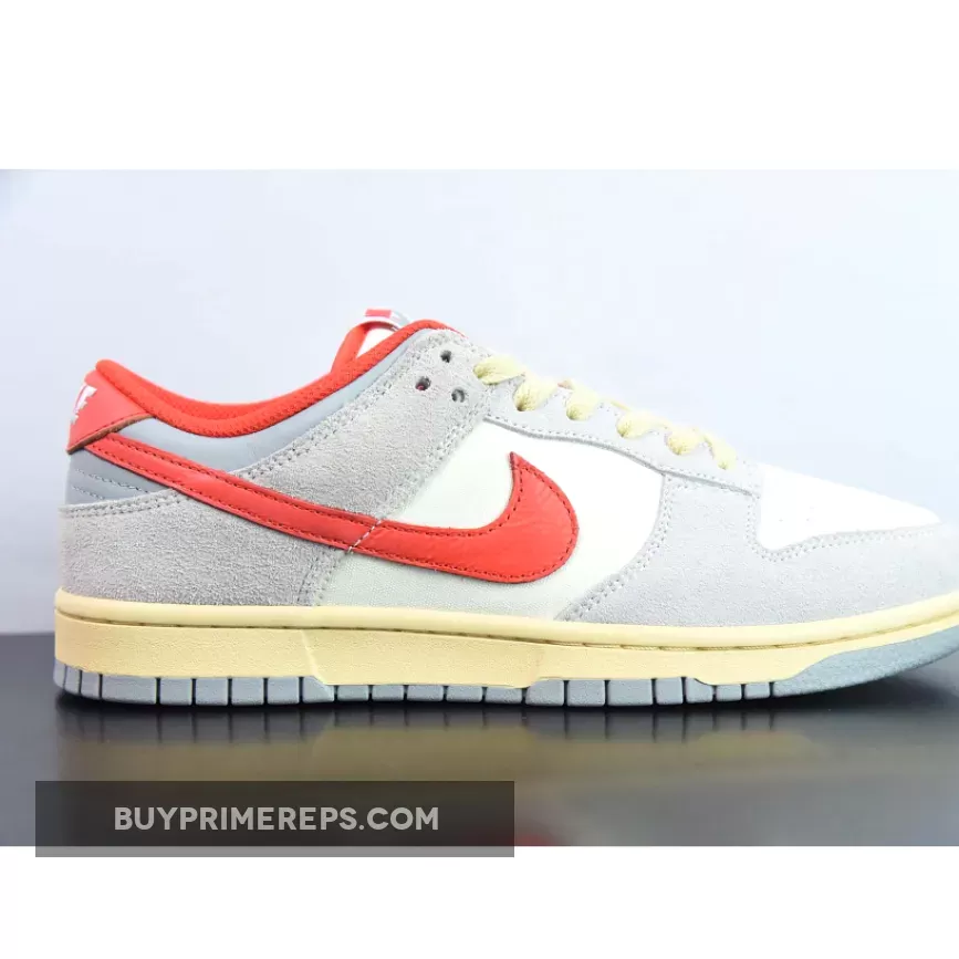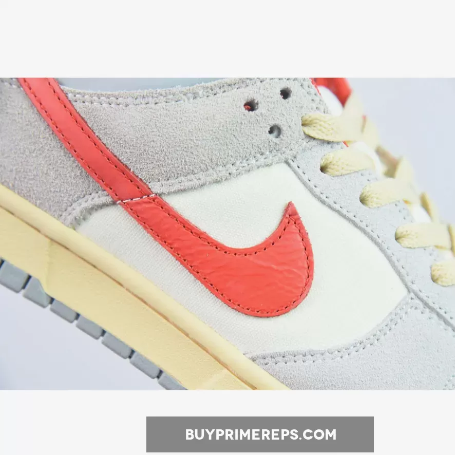 To add to the retro-inspired aesthetic, the sneaker comes with egg nog tinted laces and aged midsoles. These details give the shoe a worn-in appearance, reminiscent of sneakers from the 80s. The overall design of the Nike Dunk Low Athletic Department “Grey Red” is a nod to the past while incorporating modern materials and techniques.