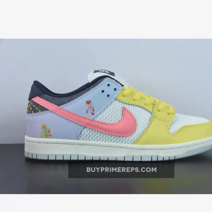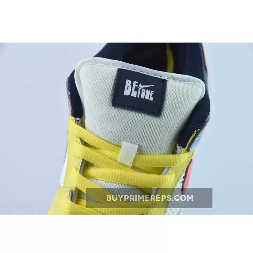 The Nike SB Dunk Low Be True features a combination of pastel tones and materials that create a vibrant and playful look. The shoe is adorned with various graphics that add depth and personality to its design. The “Be True” branding is prominently displayed on the tongues and insoles, serving as a reminder of the shoe’s initial purpose – to celebrate inclusivity and diversity.