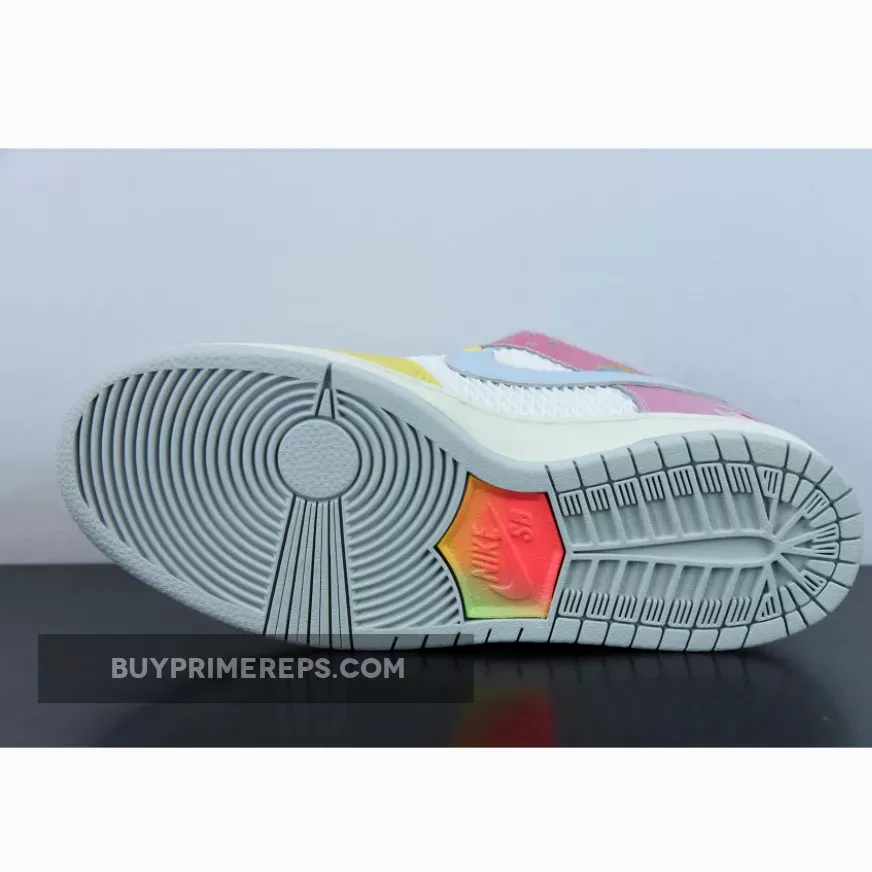 To complete the look, the shoe is finished with a light purple rubber outsole. This adds a final pop of color and ties the entire design together seamlessly. It’s a subtle yet effective detail that adds to the overall appeal of the Nike SB Dunk Low Be True.