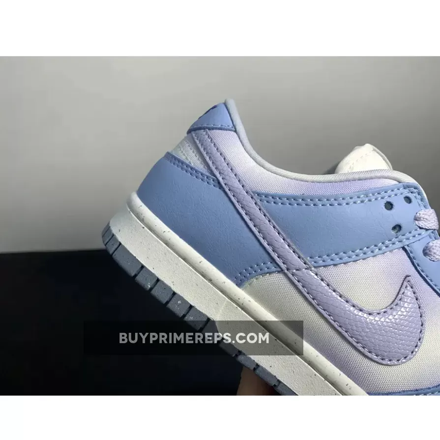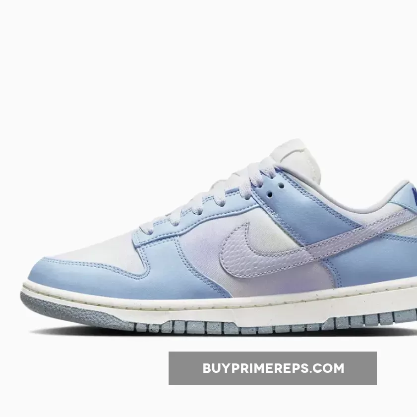 The low-top Dunk features a canvas base in a pale shade of blue, covering the toe box, mid-panels, and part of the collar. The smooth leather overlays in a powder blue hue add a touch of sophistication. But what really sets this shoe apart is the faux crocodile skin Swooshes on the medial and lateral mid-panels. These eye-catching details make a bold statement and elevate the overall design.