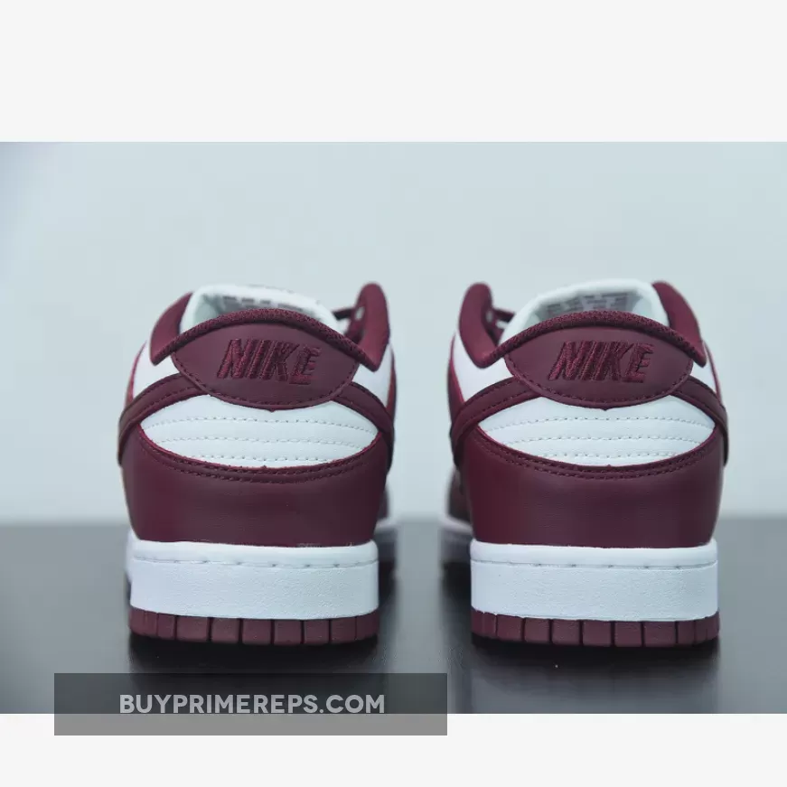 The Nike Dunk Low Bordeaux boasts a premium construction, with smooth leather panels adorning the upper. The overlays, including the toe caps, eyestays, and heel tabs, are dressed in the deep Bordeaux shade, adding a touch of sophistication to the design. The iconic Swoosh logos on the lateral and medial sides also feature the Bordeaux color, creating a cohesive look.