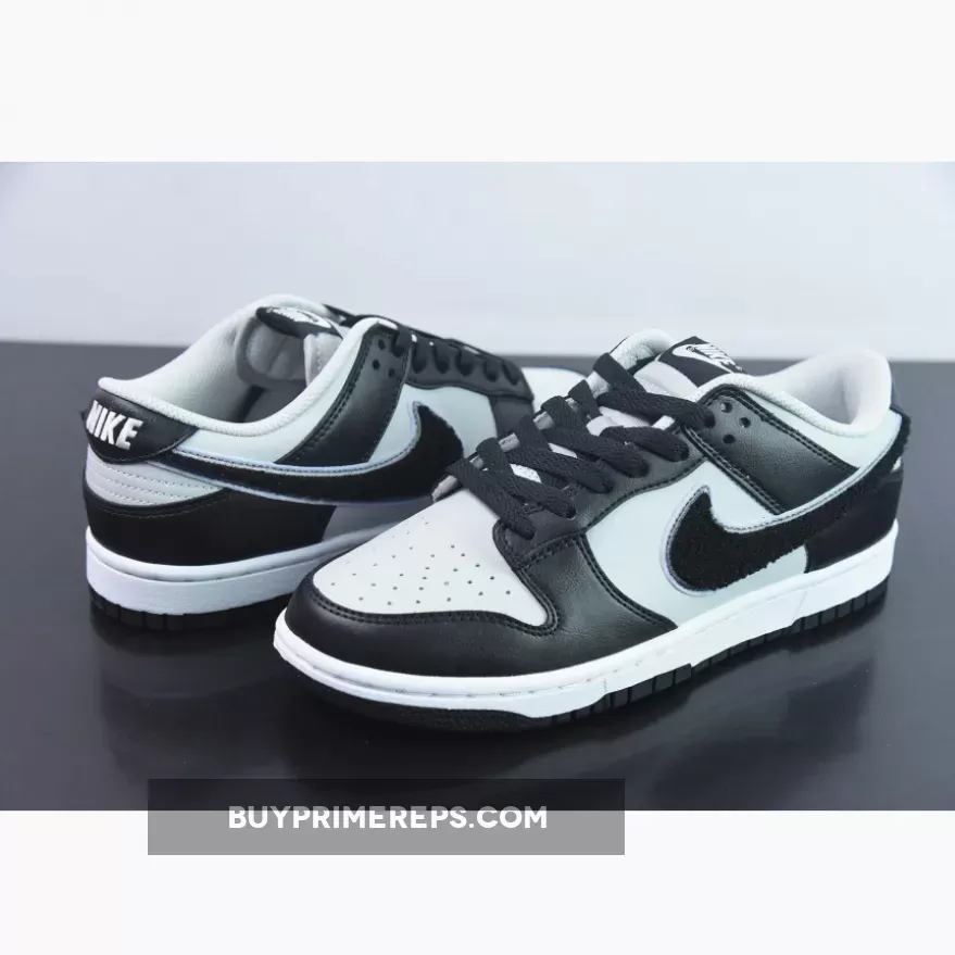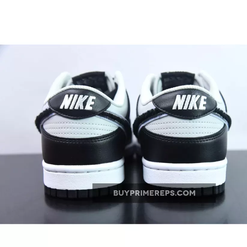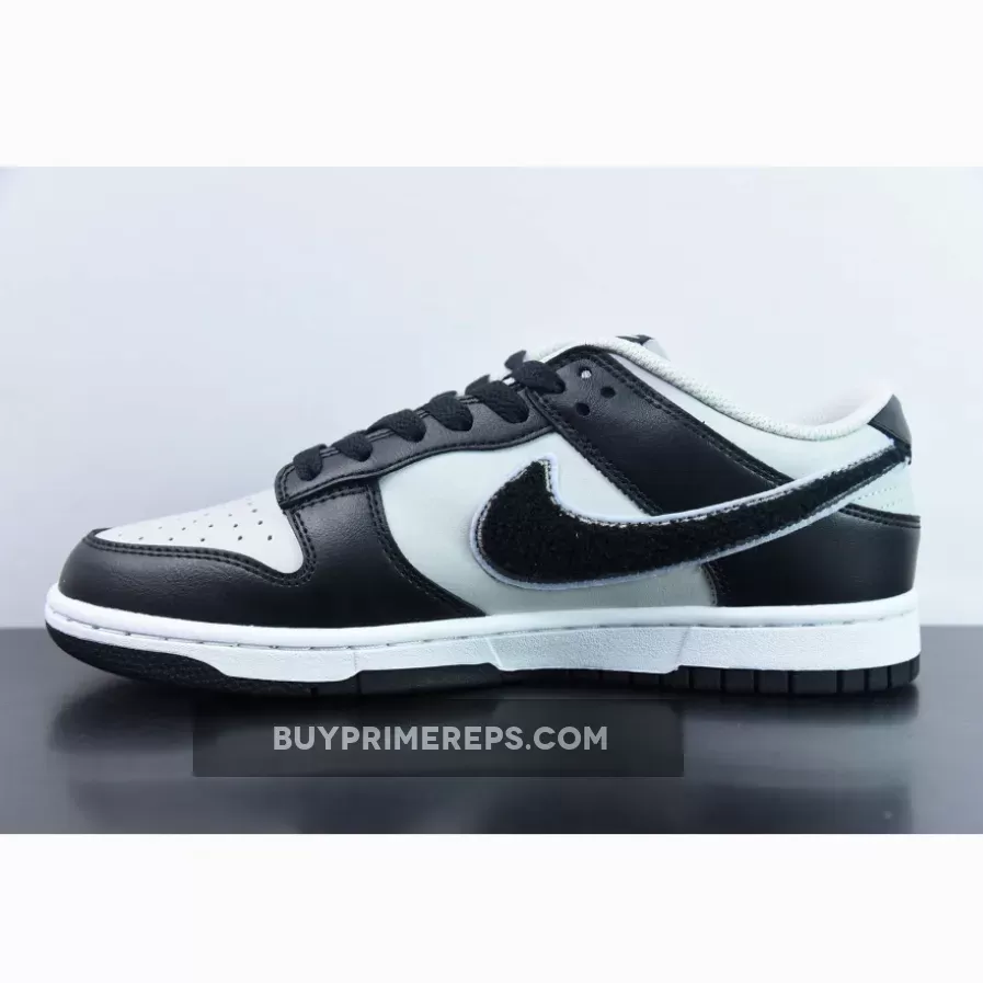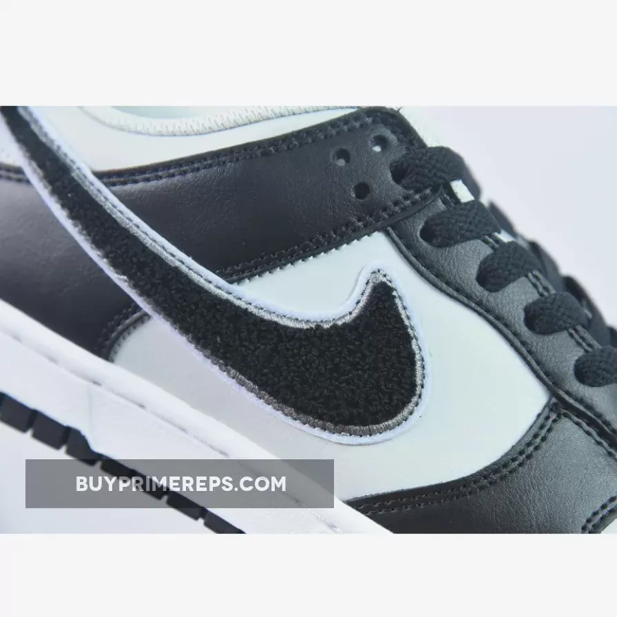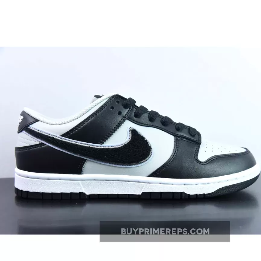 The Nike Dunk Low Chenille Swoosh Grey Black features a classic two-toned palette that exudes sophistication and style. The upper is constructed from premium leather, with a light grey base and black overlays adding depth and contrast to the design. However, the standout feature of this Dunk Low is undoubtedly the oversized chenille Swooshes that adorn both the medial and lateral sides of the shoe. This unique element adds a touch of texture and visual interest, setting it apart from other Dunk models.