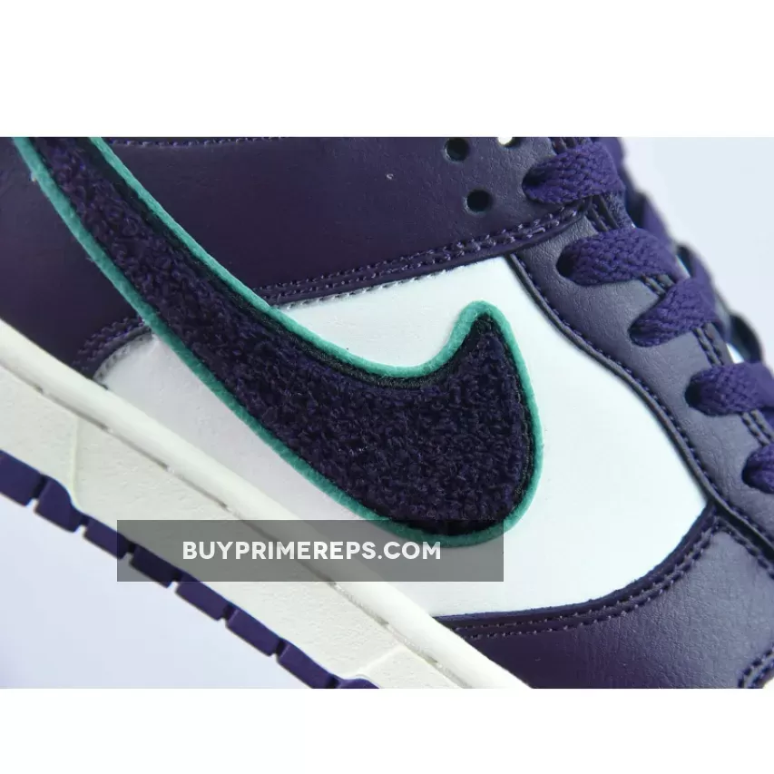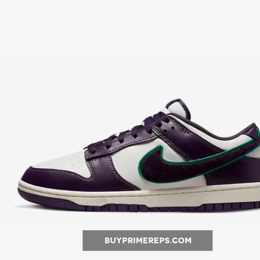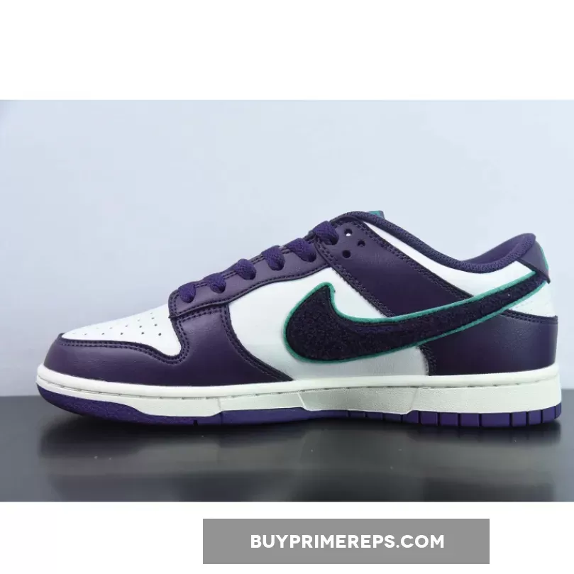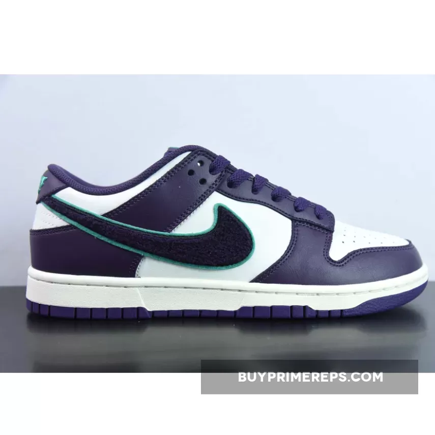 The Nike Dunk Low Chenille White Purple is the latest addition to the ever-expanding lineup of Dunk Low sneakers from the Swoosh Brand. This particular iteration takes a unique approach by incorporating a mixed materials design. The front of the sneaker appears fairly standard, with a sleek white leather base. However, it is the details and accents that truly set this pair apart.