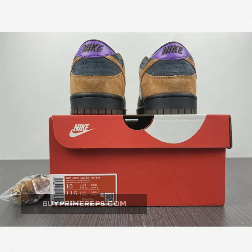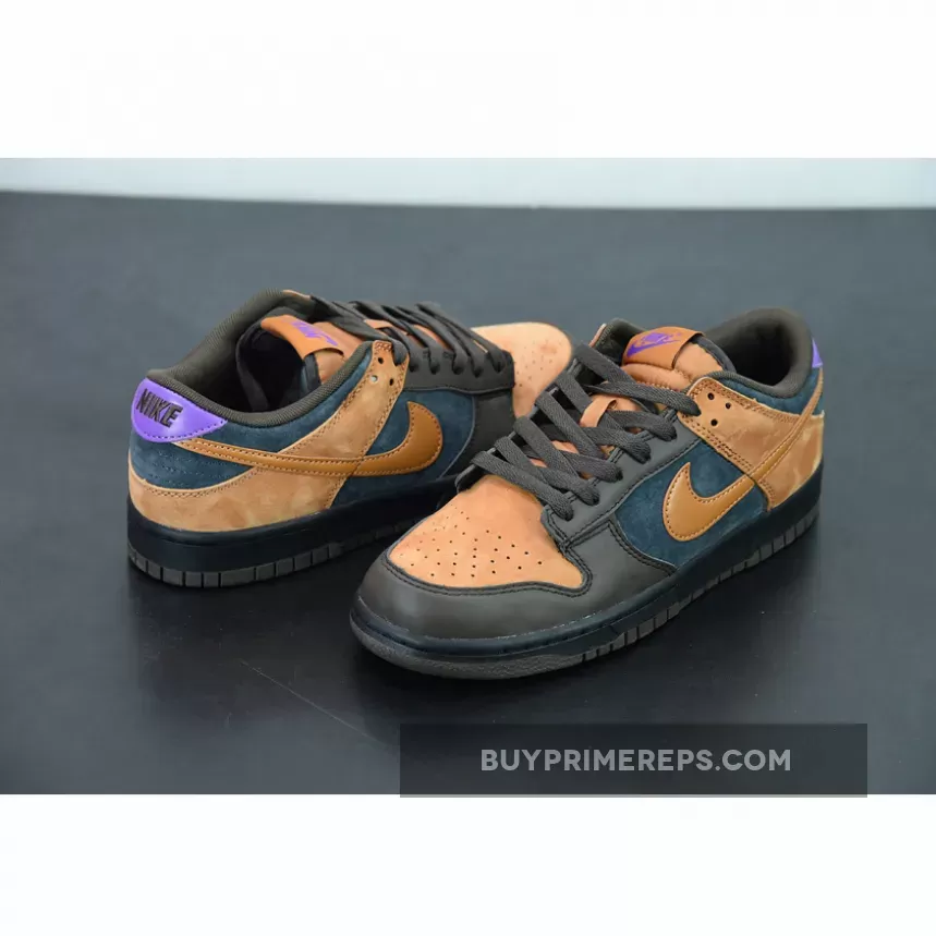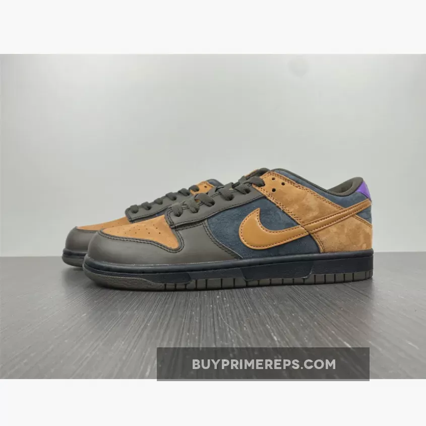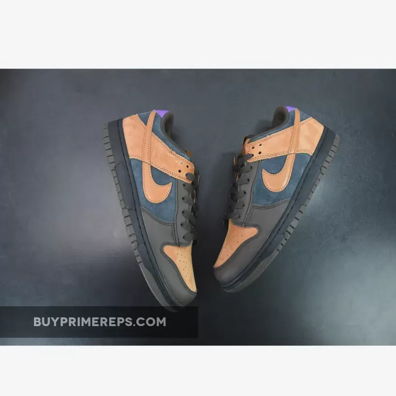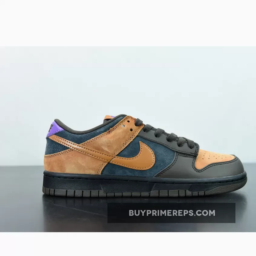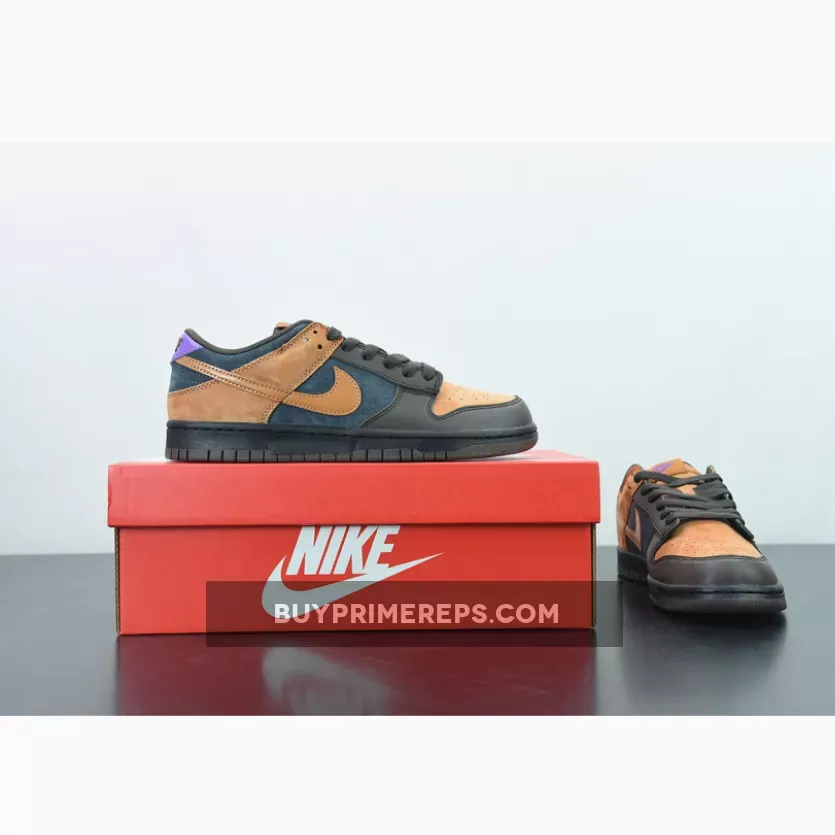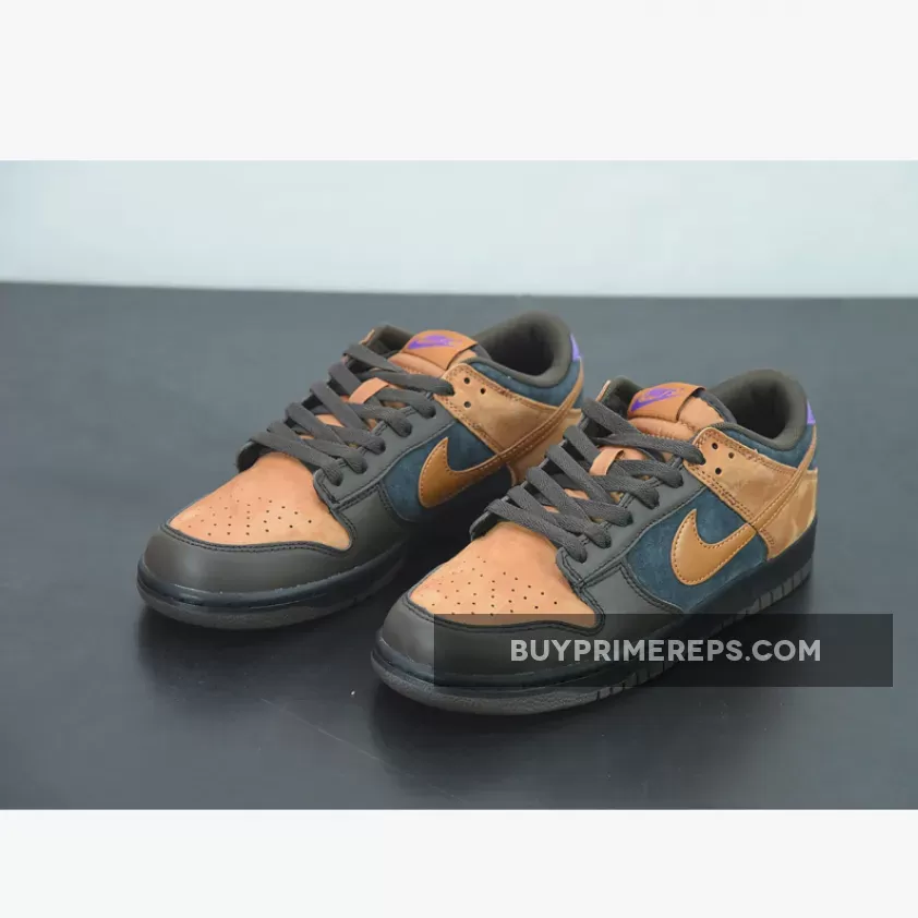 Introducing the Nike Dunk Low Cider – the perfect sneaker to embrace the cozy vibes of autumn. This fall-ready shoe is crafted with a combination of luxe materials, world-famous branding, exclusive cushioning, and a rich color palette. With its mix of smooth leather, brushed suede, and nubuck, the upper of the shoe showcases varying shades of brown, orange, and black. Adding a touch of contrast, a pop of purple is featured on the heel. The iconic Nike Swoosh sits proudly on the sidewalls, while the retro logo completes the look on the heel and tongue.