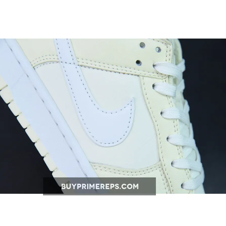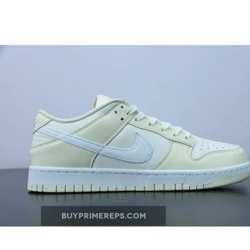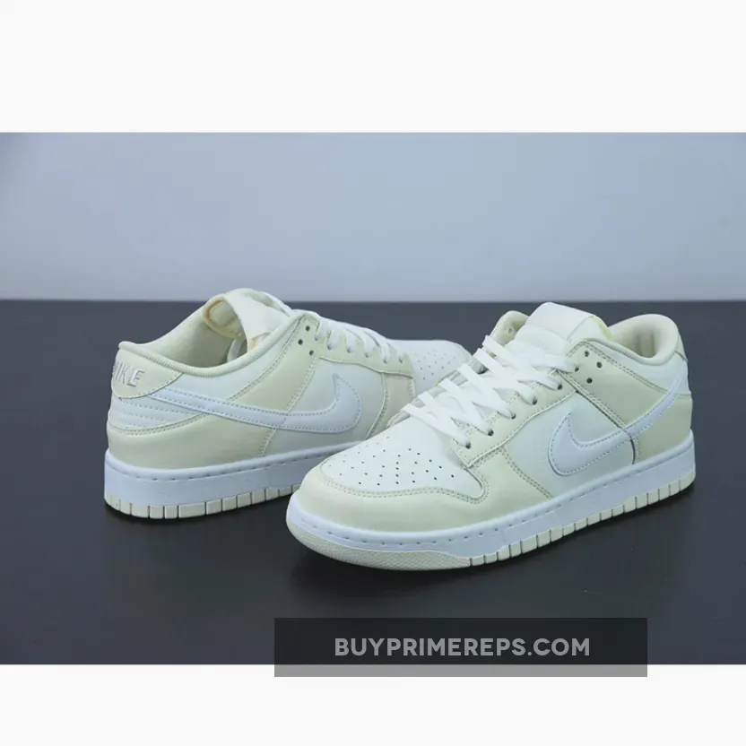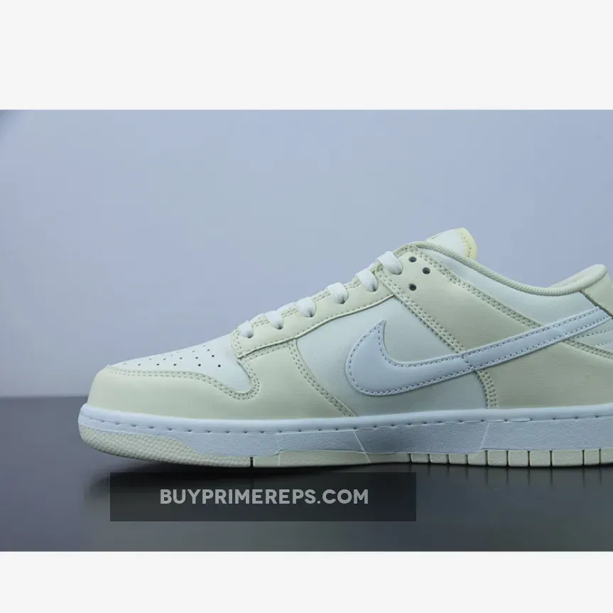 The upper of the Nike Dunk Low “Coconut Milk” is constructed with a sail leather base, giving the shoe a sleek and modern look. The clean white Swooshes, laces, and midsole provide a subtle contrast to the creamy overlays and outsole. The use of premium materials elevates the overall aesthetic of the sneaker, giving it a luxurious feel.