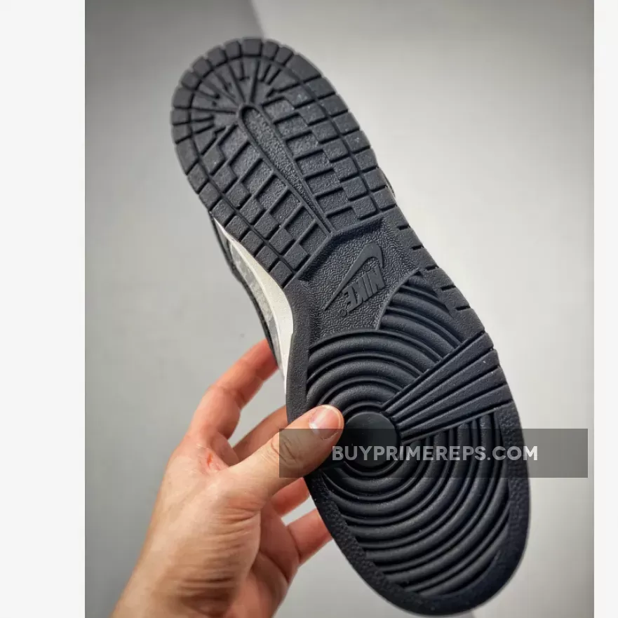 The lightweight sole unit of the Nike Dunk Low Copy Paste Grey consists of a colorless cushioned midsole and an inky outsole. The cushioning provides a comfortable and responsive feel, making these sneakers suitable for everyday wear. The outsole features a traction pattern originally designed for pivoting on the hardwood, ensuring excellent grip and stability on various surfaces.