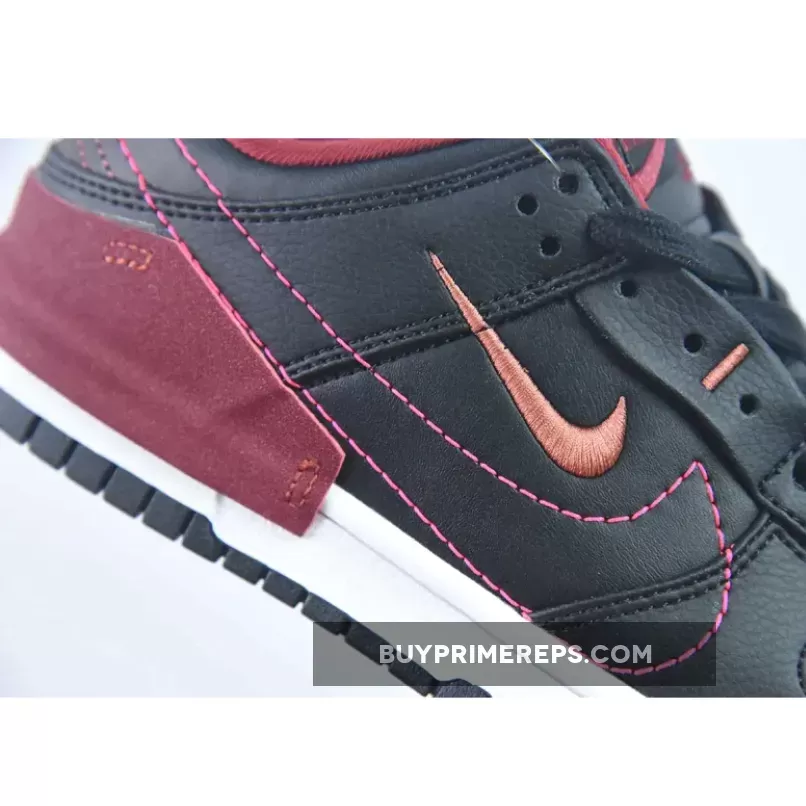 One of the standout features of the Nike Dunk Low Disrupt 2 is the embroidered Swoosh logo on the lateral sides. This eye-catching detail is accompanied by an oversized outline logo, adding a unique twist to the traditional design. The deep red accents throughout the shoe break up the black color and bring a pop of color to the overall look.
