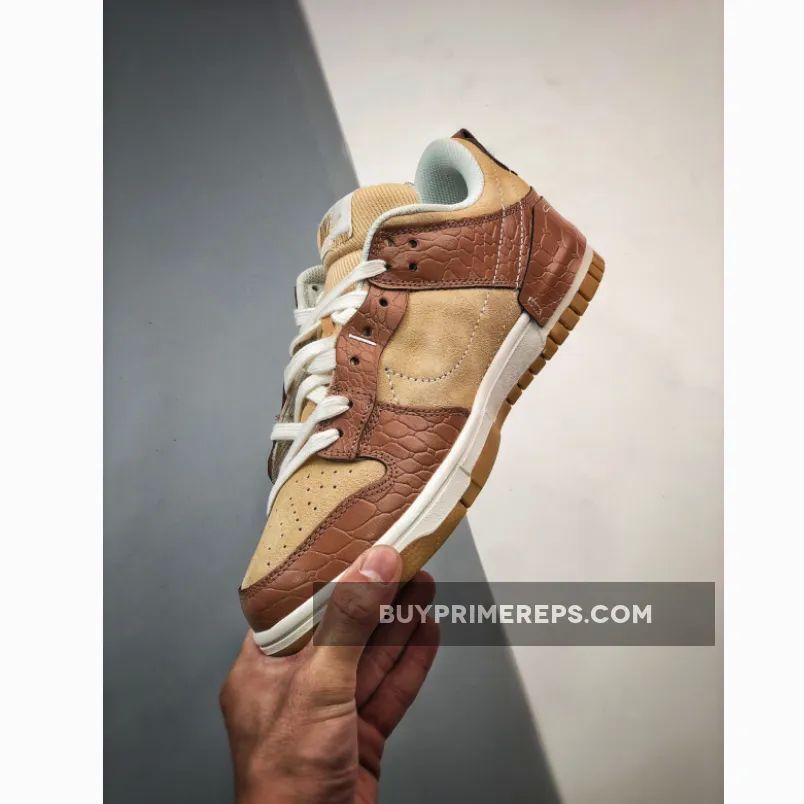 Introducing the Nike Dunk Low Disrupt 2 in the stunning “Brown Croc” colorway. This sneaker is the perfect choice for those looking to add a touch of luxury to their fall wardrobe. With its Tan suede base and Brown croc-textured leather overlays, this shoe exudes sophistication and style.