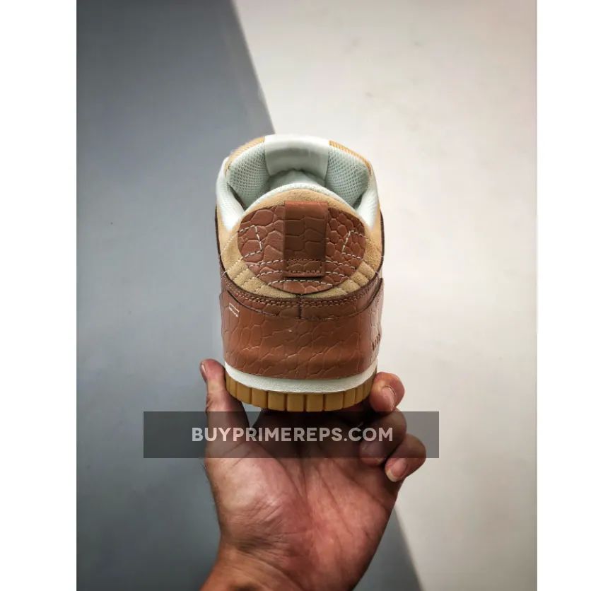 The upper of the Nike Dunk Low Disrupt 2 is crafted from a combination of premium materials. The Tan suede base provides a soft and velvety texture, while the Brown croc-textured leather overlays add a unique and eye-catching element. The contrast between the two materials creates a visually striking look that is sure to turn heads.