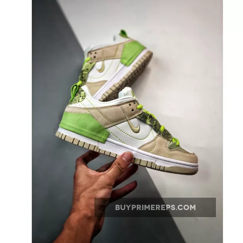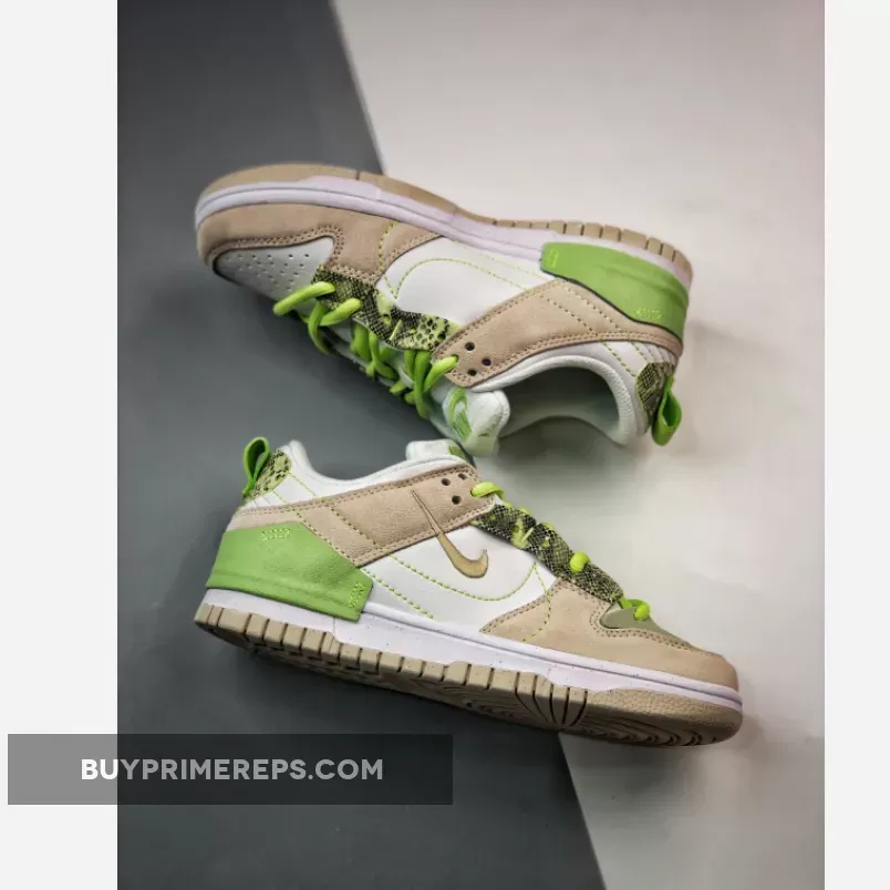 The Nike Dunk Low Disrupt 2 Green Snake is a bold and eye-catching sneaker that combines a classic silhouette with a unique and exotic design. This iteration of the Dunk Low Disrupt 2 features a snakeskin print on the eyestays and heels, adding a touch of luxury and intrigue to the shoe.