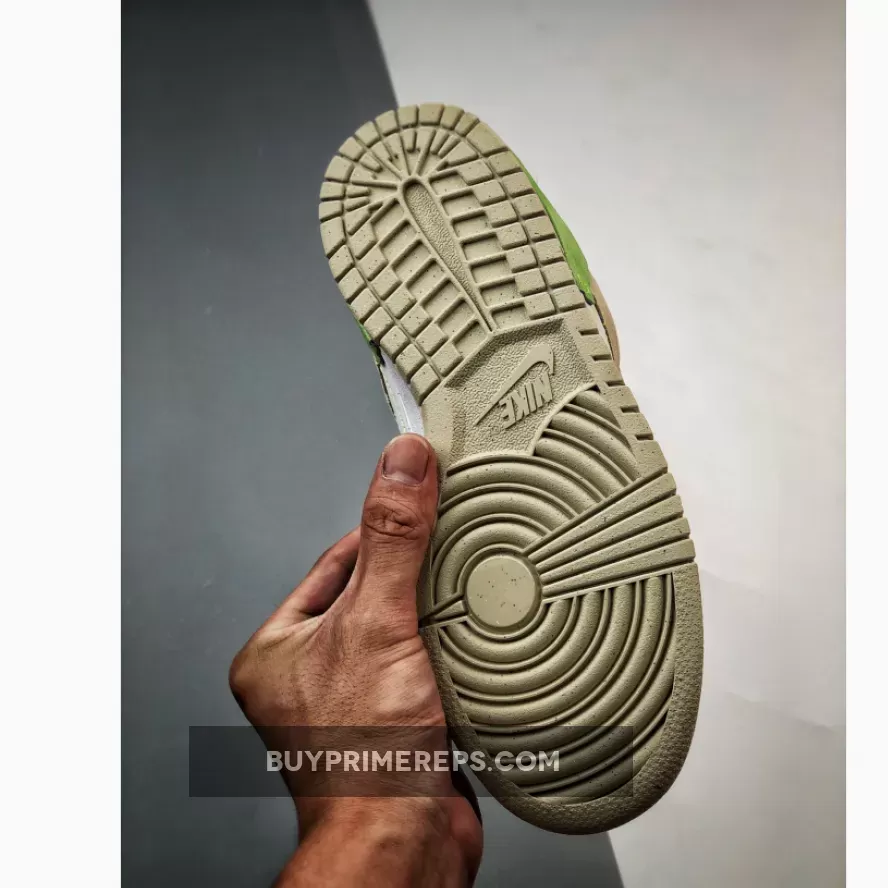 The Nike Dunk Low Disrupt 2 Green Snake is completed with embroidered Nike Swooshes on the side panels, white rubber midsoles, and beige Grind rubber outsoles. These details add the finishing touches to the shoe, ensuring that it is not only fashionable but also comfortable and durable.