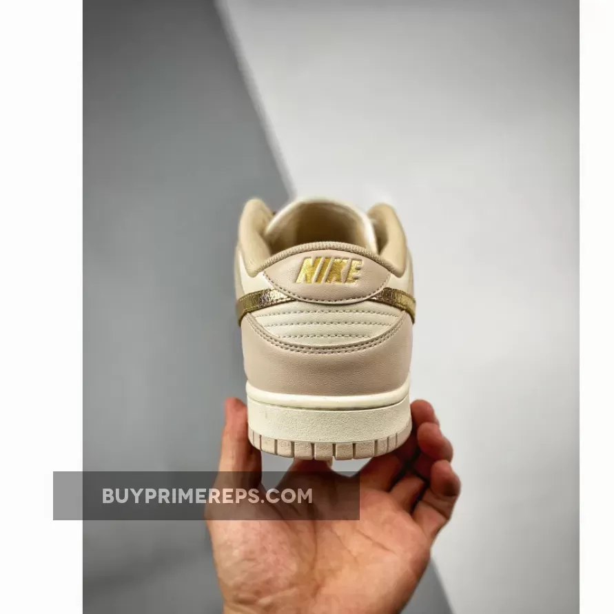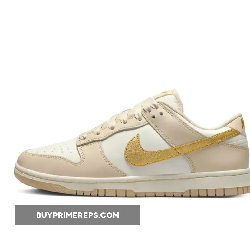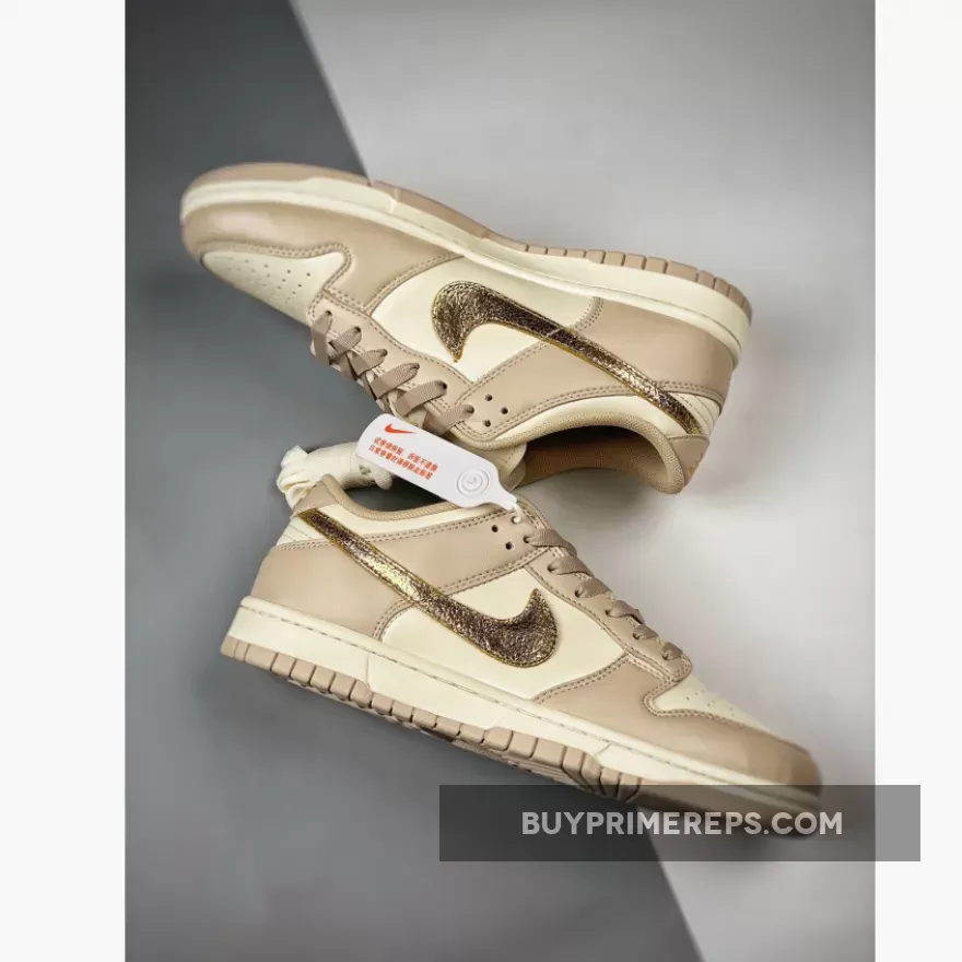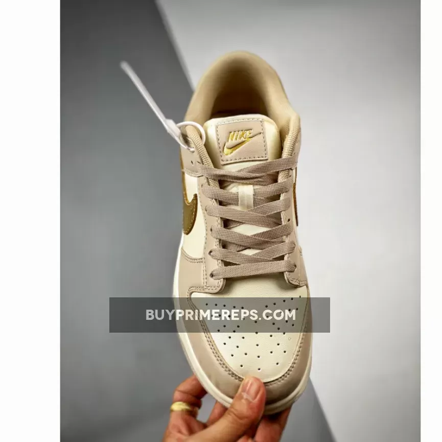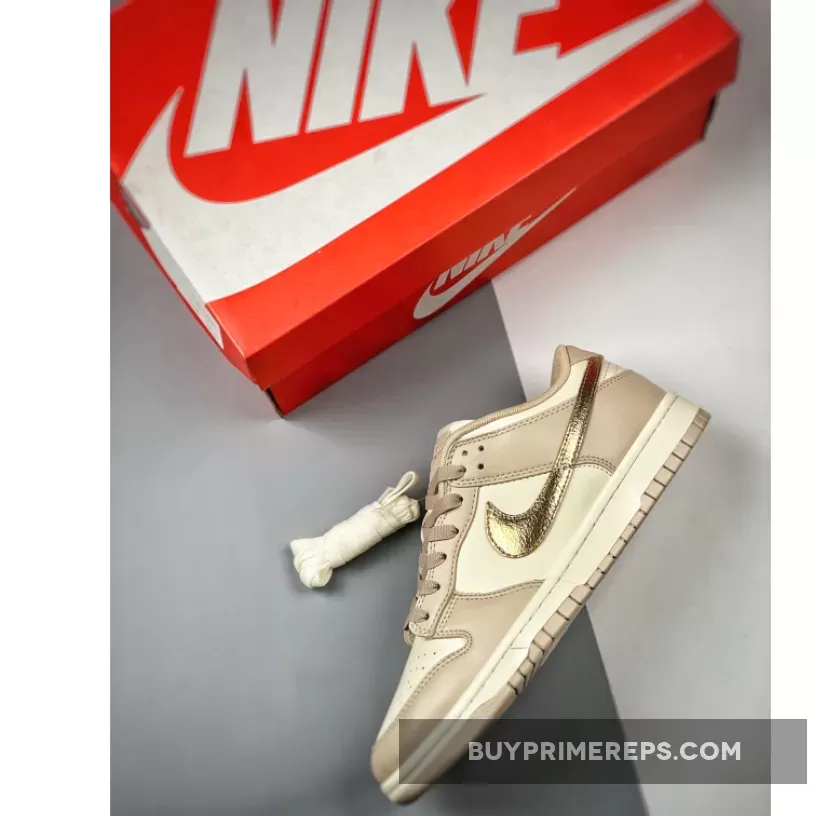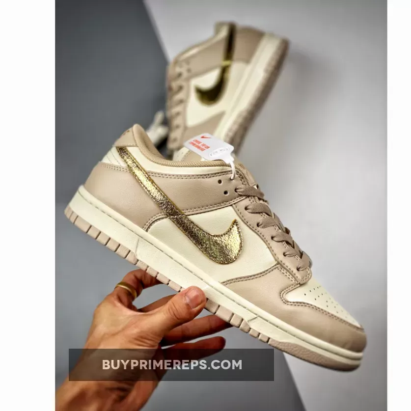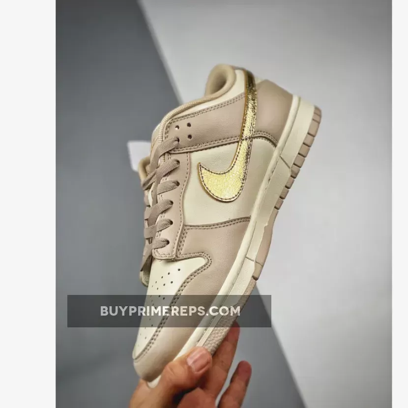 Overall, the Nike Dunk Low Golden Swoosh Tan is a stylish and versatile sneaker that combines classic design with modern accents. Its clean white and tan colorway, gold Swooshes, and gold branding make it a standout choice for those who appreciate attention to detail. With its comfort and durability, this sneaker is not only fashionable but also functional. Whether you’re a sneakerhead or just looking for a new pair of kicks, the Nike Dunk Low Golden Swoosh Tan is a solid choice.