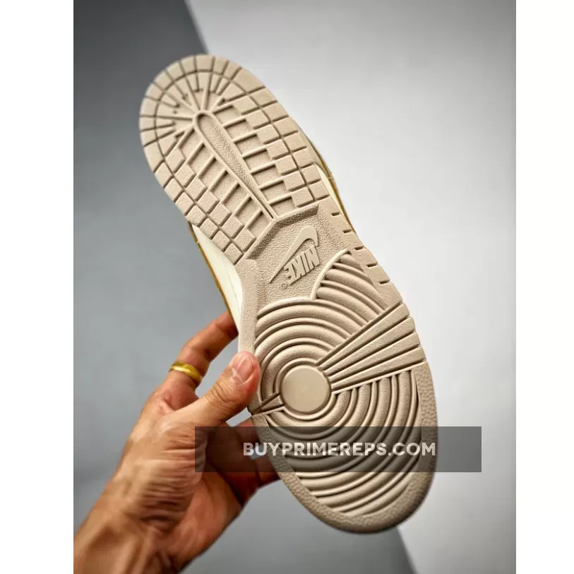 Not only does the Nike Dunk Low Golden Swoosh Tan look great, but it also offers comfort and durability. The white midsole provides cushioning and support, making it ideal for all-day wear. The cream/tan rubber outsole adds traction and grip, ensuring stability with every step. Whether you’re walking around the city or hitting the basketball court, this sneaker will keep you comfortable and secure.