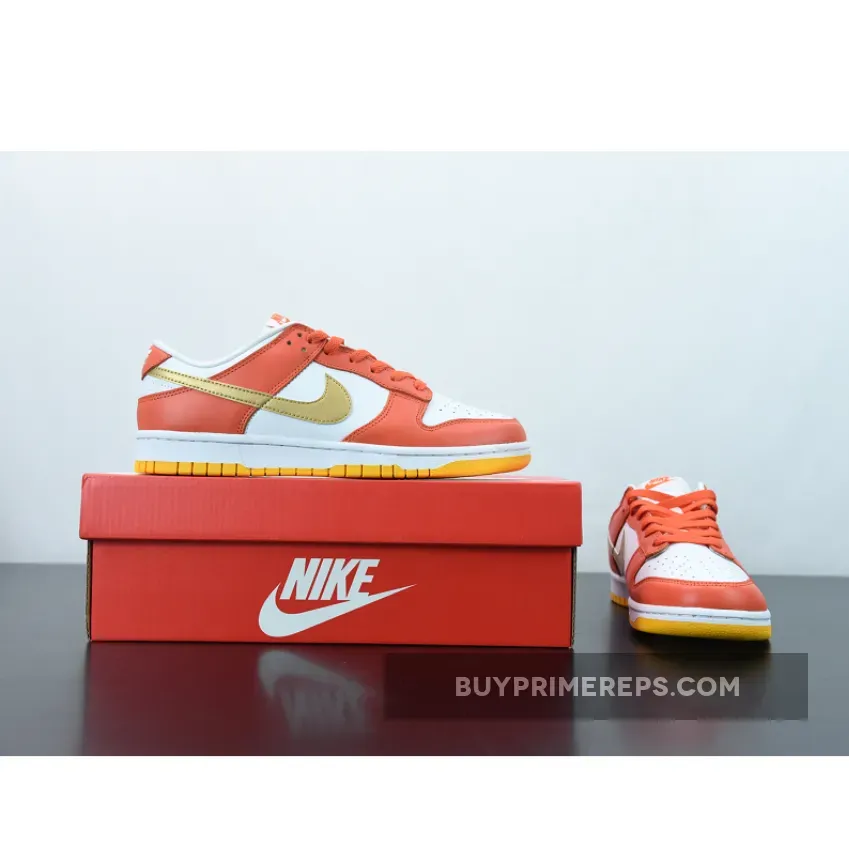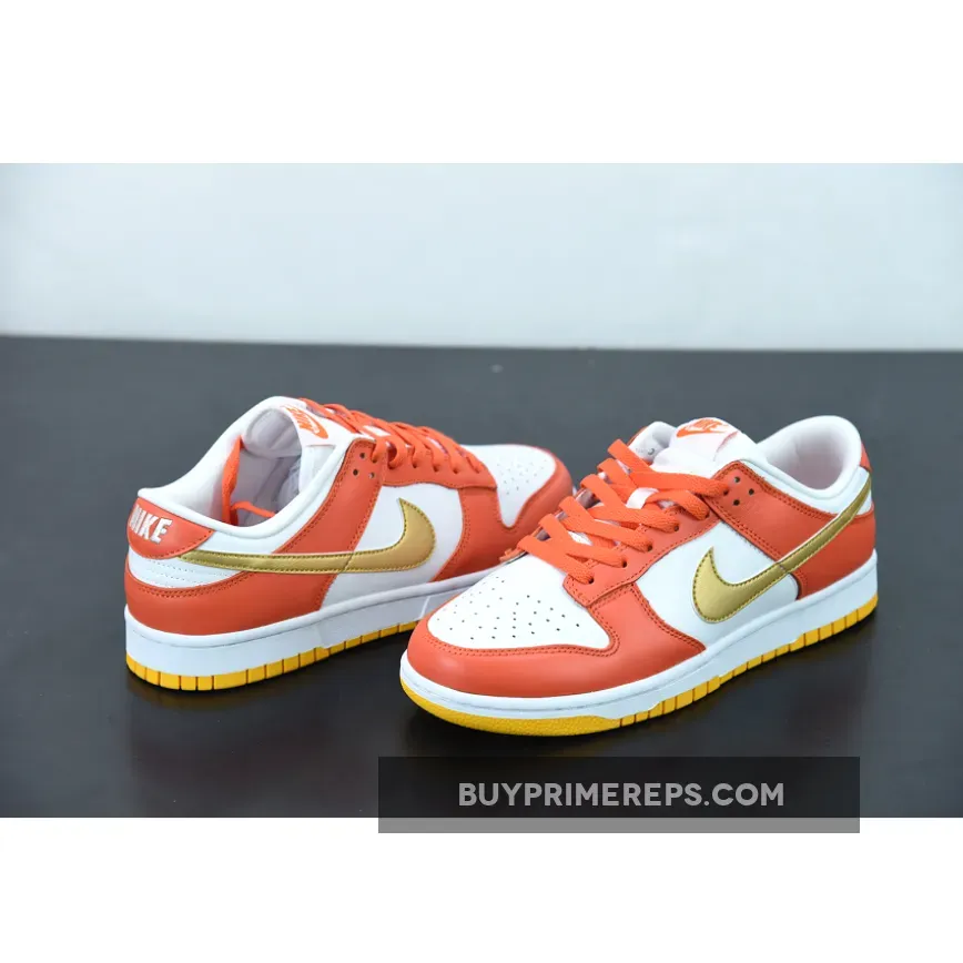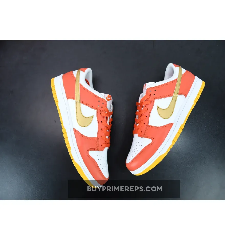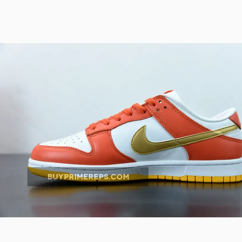 The standout feature of the Nike Dunk Low Golden Orange is undoubtedly the gold Swooshes on the side panels. These metallic accents elevate the shoe’s style and give it a luxurious touch. The combination of orange and gold creates a striking contrast that is sure to turn heads wherever you go.