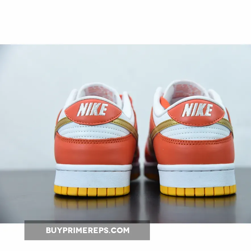 In terms of comfort, the Nike Dunk Low Golden Orange does not disappoint. The white leather upper provides durability and support, while the cushioned midsole ensures a comfortable fit. Whether you’re wearing them for a casual stroll or a day out with friends, these sneakers will keep your feet feeling comfortable and stylish.