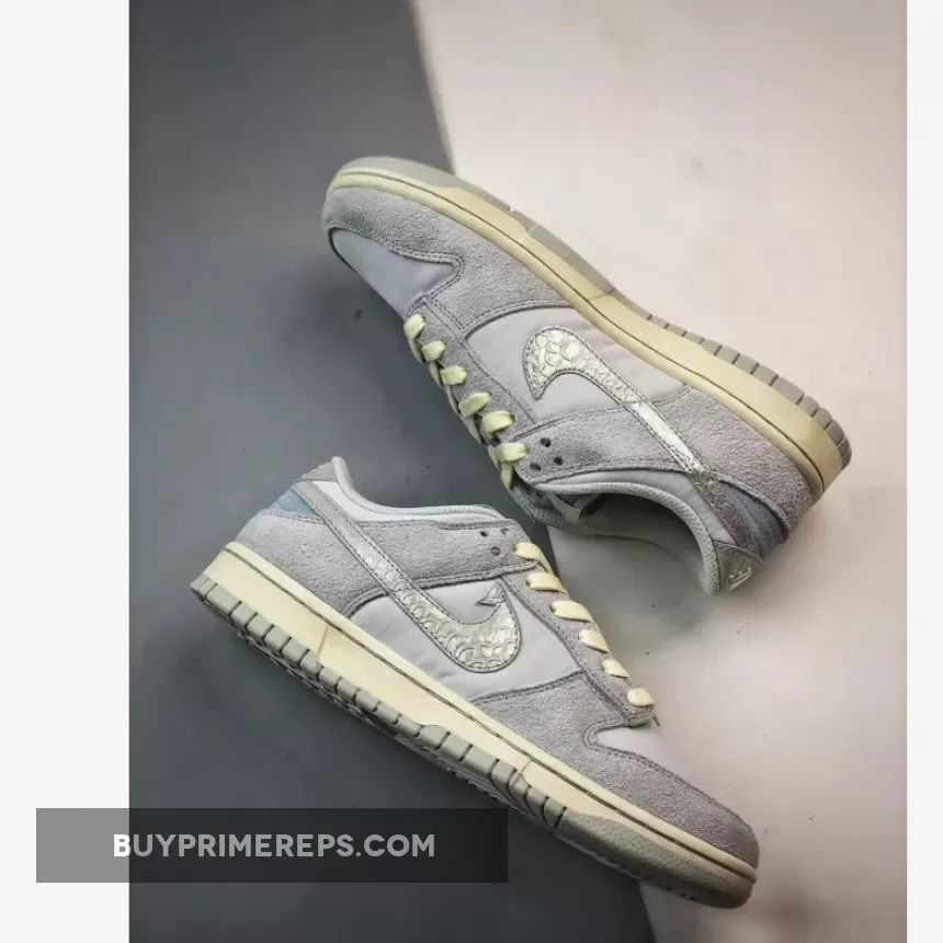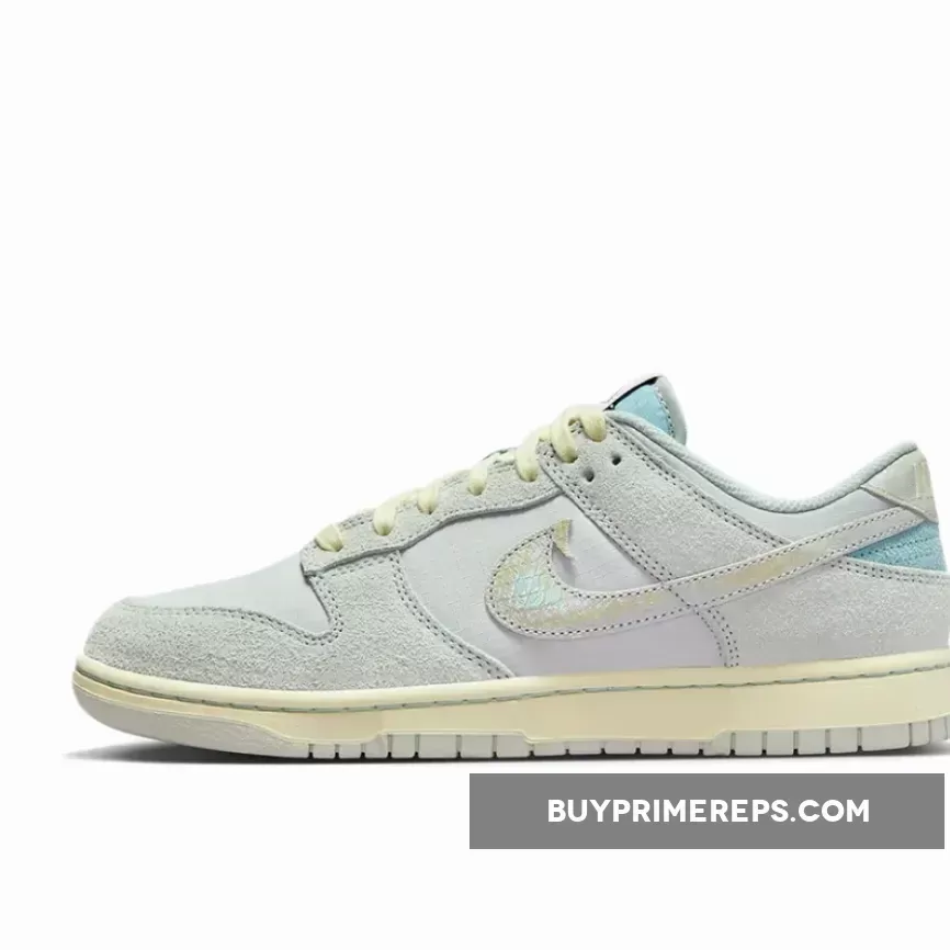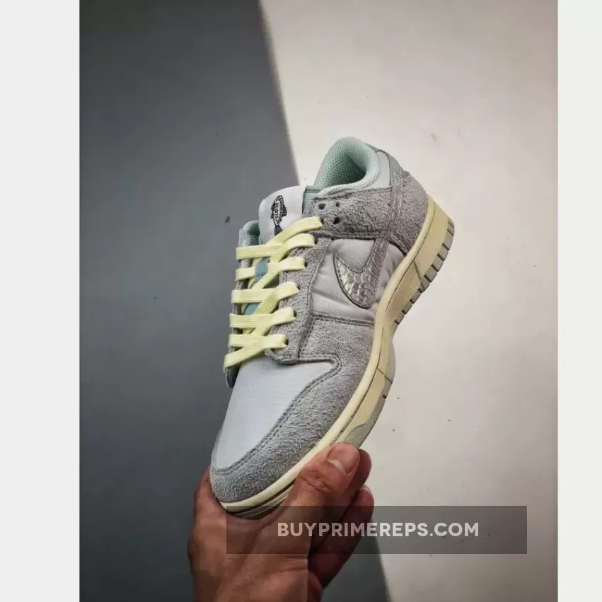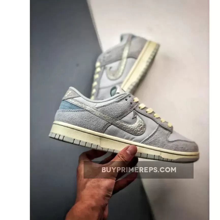The upper of the Nike Dunk Low ‘Gone Fishing’ is constructed with a combination of nylon and suede materials, giving it a premium and textured look. The standout feature of this shoe is the Swooshes on the sidewalls, which have a scale-like finish and resemble a fishing hook with its pointed shape. This attention to detail adds a touch of creativity and uniqueness to the overall design.