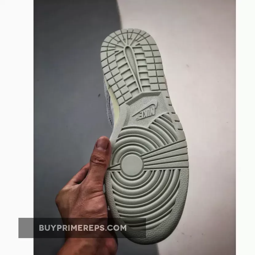 The sole unit of the Nike Dunk Low ‘Gone Fishing’ is designed with an “aged” aesthetic, featuring a yellowed midsole. This adds a sense of character and history to the shoe, giving it a unique and worn-in look.