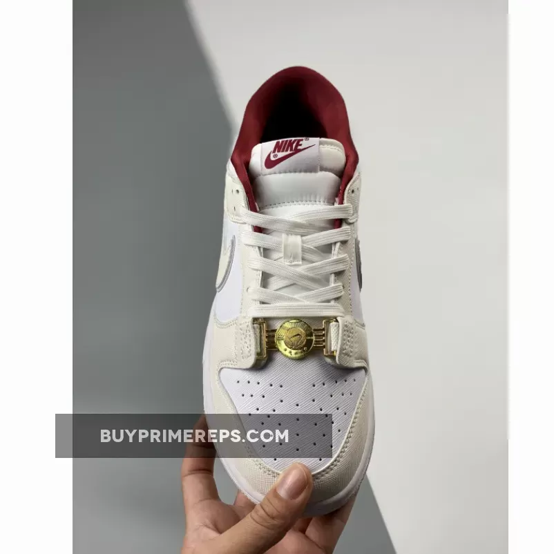 One of the standout features of this shoe is the use of Team Red accents. These accents can be seen on the interior lining and the woven Nike tongue tag, adding a pop of color and visual interest. The combination of the white, cream, and Team Red colors creates a harmonious color palette that is versatile and easy to style.