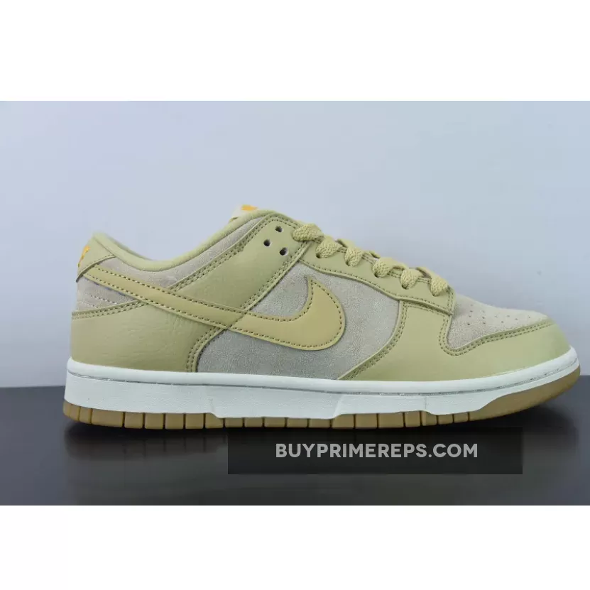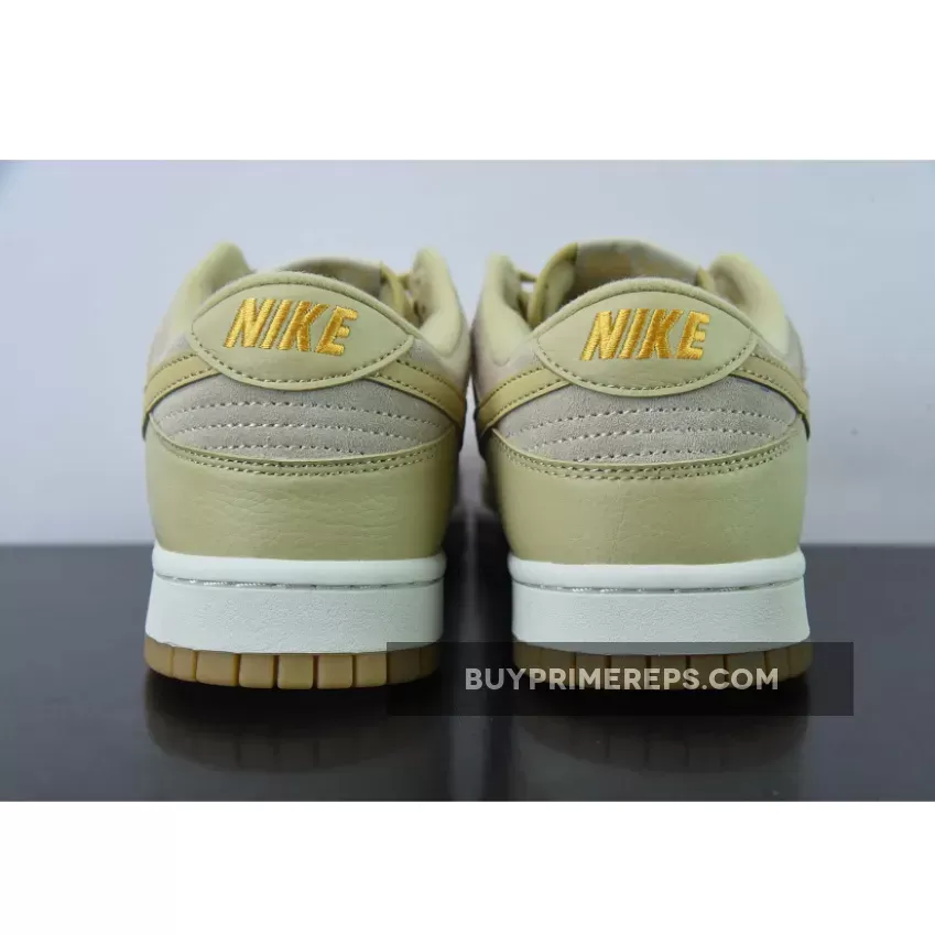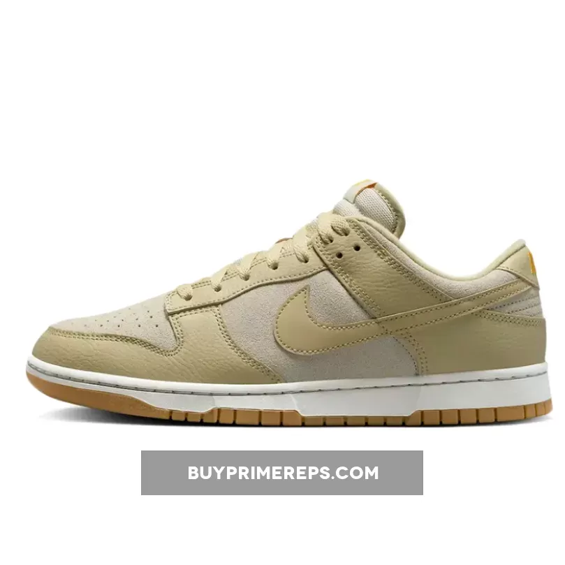 The upper of the Nike Dunk Low Tan Suede Gum features a mix of tumbled leather and smooth suede in a light tan color. The tumbled leather sections add a luxurious touch, while the suede panels provide a soft and comfortable feel. The tan color is complemented by a tonal Swoosh on the sides, laces, and lining, creating a cohesive and clean look.