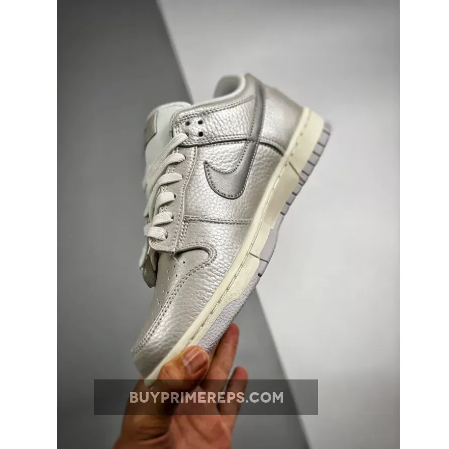 Introducing the Nike Dunk Low Metallic Silver, the latest addition to the iconic Dunk Low lineup. This sleek and stylish sneaker features a simple and classy construction that is perfect for the upcoming summer season. Designed with lightweight and durable materials, these shoes are not only comfortable but also built to last.