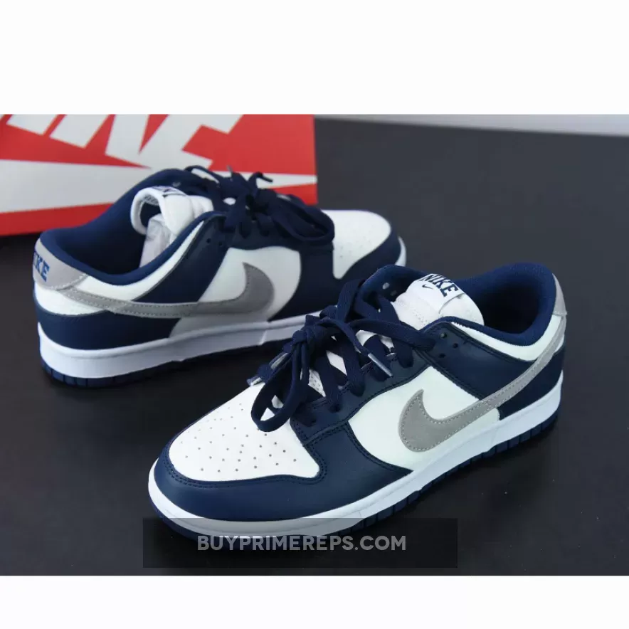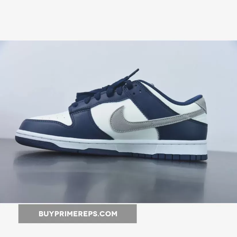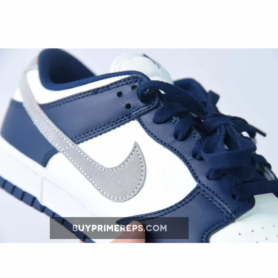 Introducing the Nike Dunk Low Midnight Navy Light Smoke Grey White, a timeless sneaker that combines classic design with contemporary style. This particular offering sees the iconic low-top silhouette come dressed in a midnight navy, light smoke grey, and summit white color scheme, creating a sophisticated and versatile look.