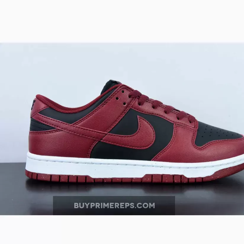 The Nike Dunk Low Next Nature “Red/Black” features a sleek and stylish design that will surely turn heads. The upper is constructed with a combination of black leather and mesh, providing durability and breathability. The black base is complemented by contrasting burgundy overlays, adding a touch of sophistication to the overall look.