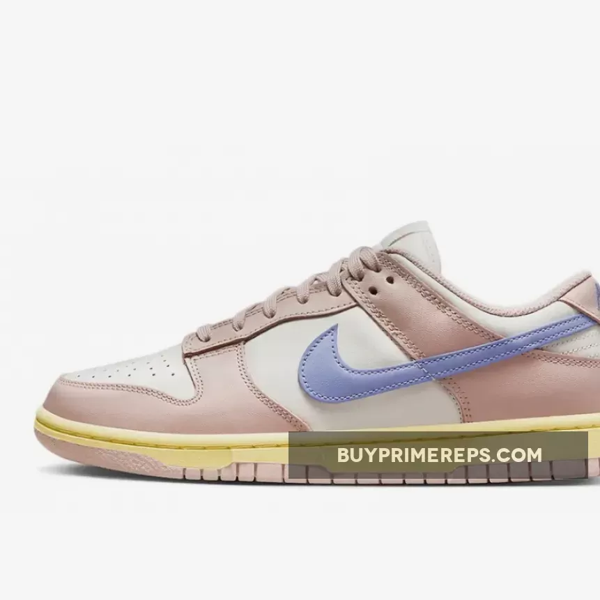 The Nike Dunk Low Pink Oxford showcases a unique combination of colors that work together harmoniously. The upper is crafted from smooth leather, which gives it a luxurious look and feel. The overlays on the shoe have a metallic sheen, adding a touch of elegance to the overall design. The pink colorway is soft and feminine, making it a perfect choice for those who love a splash of color in their sneaker collection.