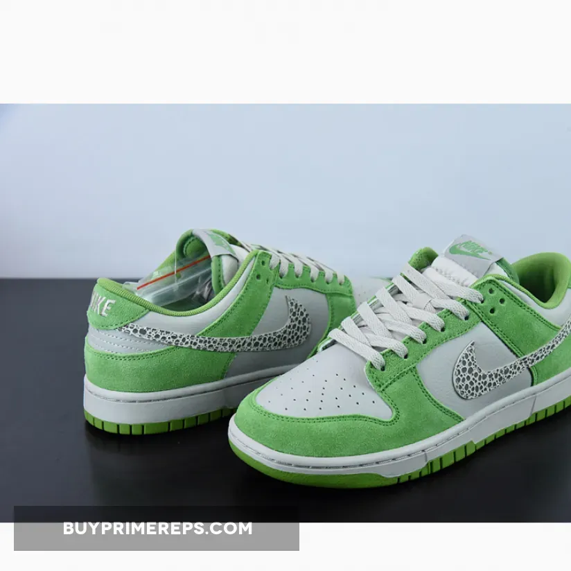 Introducing the Nike Dunk Low “Chlorophyll”, a vibrant and eye-catching addition to the Nike Dunk collection. This colorway is part of the Safari pack and features a unique twist on the classic Dunk silhouette. With its bold use of green and leopard print accents, the Nike Dunk Low “Chlorophyll” is sure to turn heads.