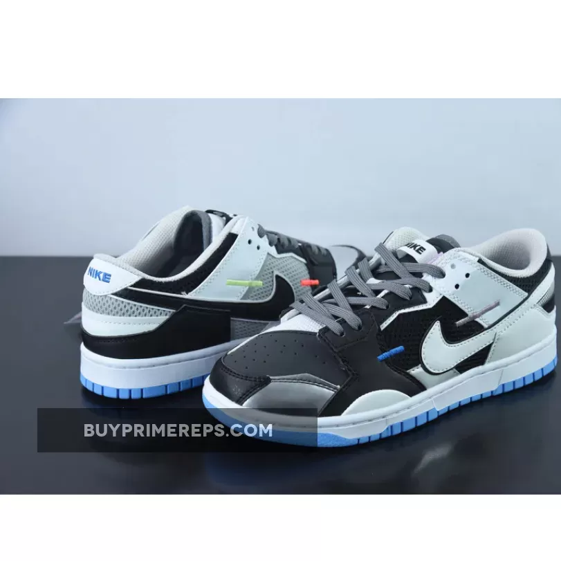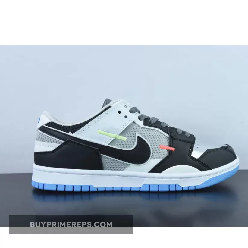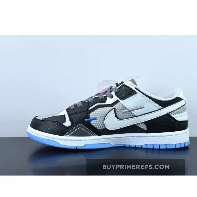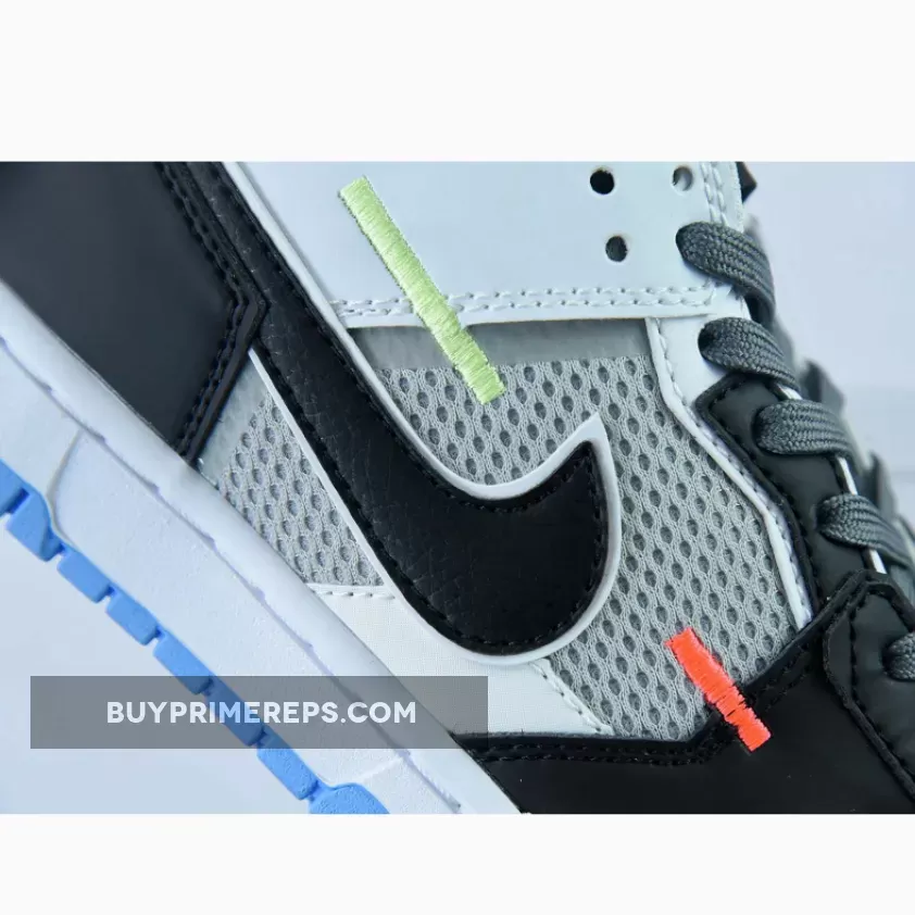 The upper of the Nike Dunk Scrap Mismatch White Black is a harmonious blend of materials, creating a unique and eye-catching design. The side panels feature breathable black mesh, providing both comfort and ventilation. The perforated toe box is made from rugged leather, adding durability and a touch of ruggedness to the shoe’s overall aesthetic.