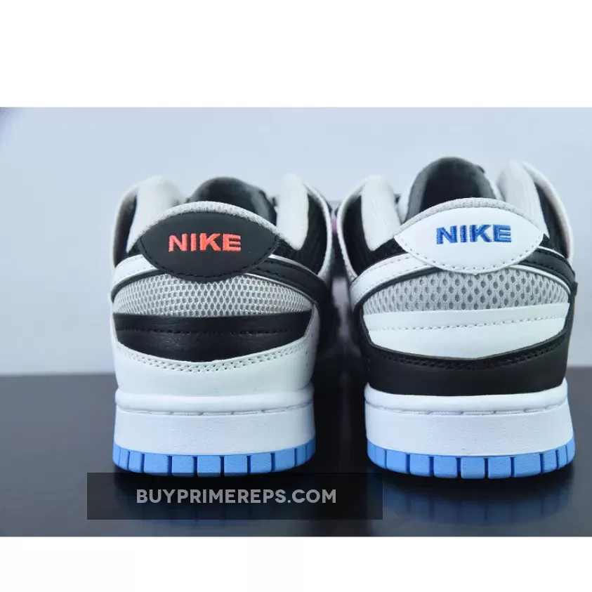 Embracing the mismatch theme, the Nike Dunk Scrap Mismatch White Black features different colored Nike Dunk brandings on the heel tab. The right shoe sports a blue Nike Dunk branding, while the left shoe features a red Nike Dunk branding. This asymmetrical detail adds a unique twist to the shoe, making it stand out from the crowd.