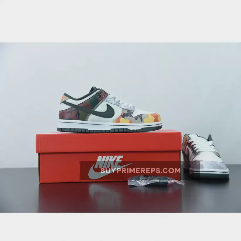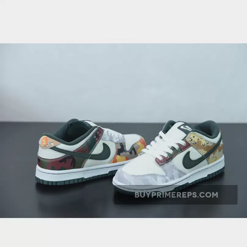 In terms of comfort, the Nike Dunk Low SE Multi Camo features a cushioned midsole for all-day wear. The rubber outsole provides traction and durability, making these shoes suitable for both casual wear and athletic activities. The low-top design allows for freedom of movement and a versatile style that can be paired with a variety of outfits.