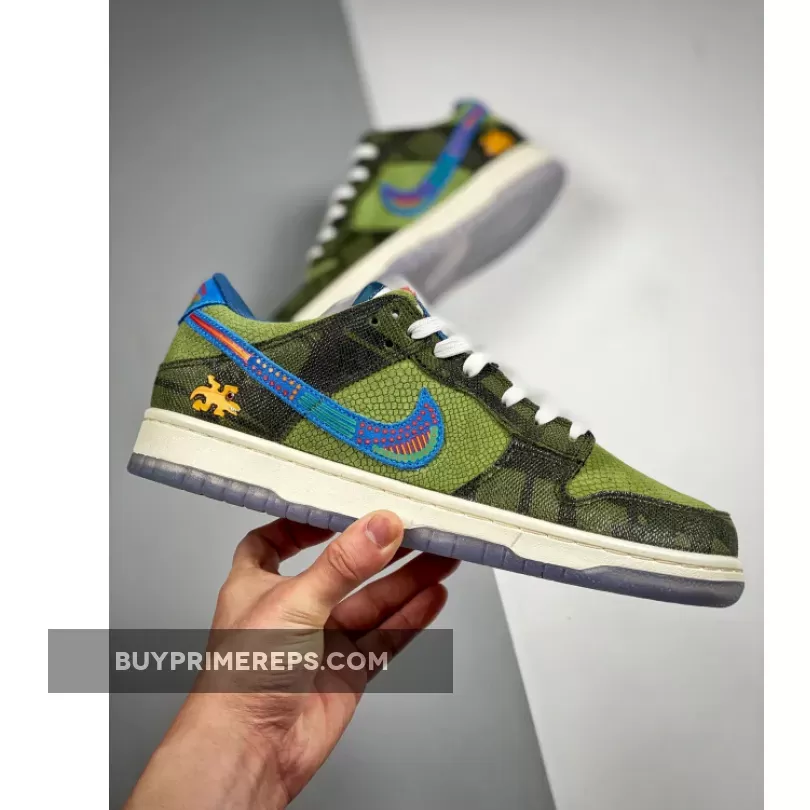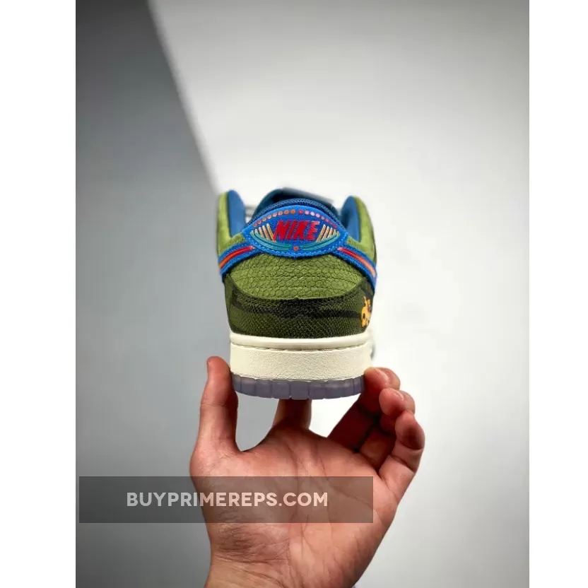 The Nike Dunk Low “Siempre Familia” is a special edition sneaker that pays homage to the Latin American holiday, Día de los Muertos, or Day of the Dead. With its vibrant and ornate design, this shoe captures the spirit of the holiday in a unique and stylish way.