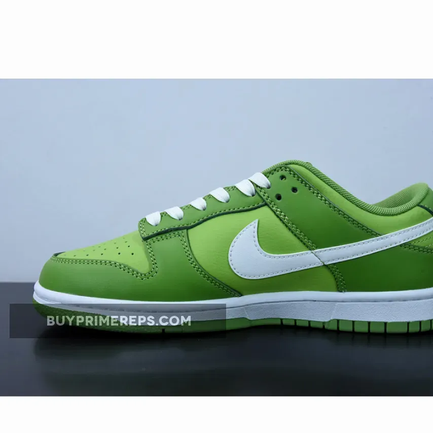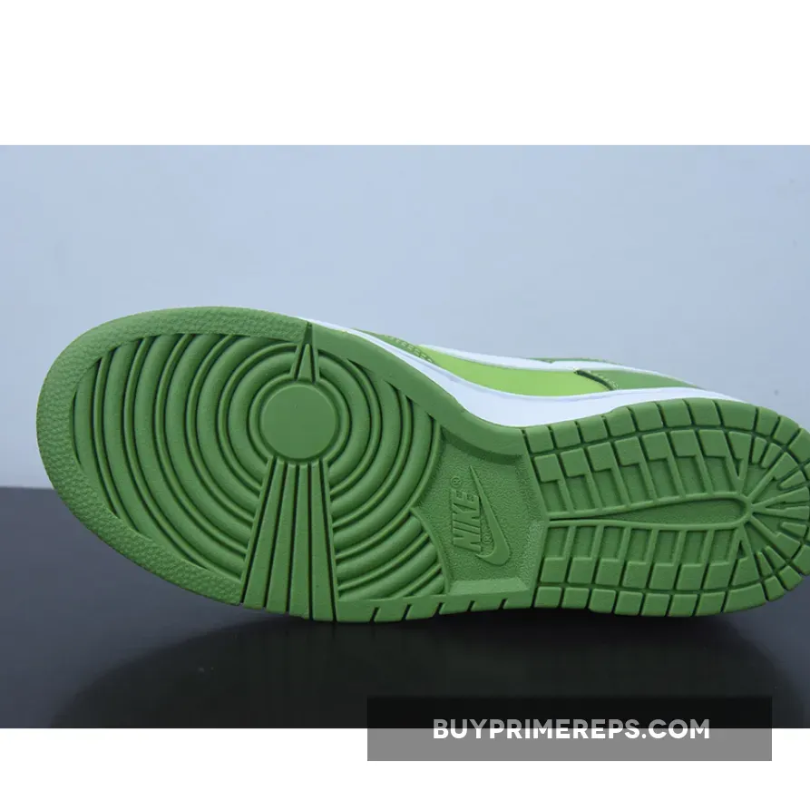 To balance out the vibrant green tones, the Nike Dunk Low “Green White” incorporates white accents throughout. The laces, Swoosh logos, and midsole are all rendered in a clean white colorway, creating a crisp and clean aesthetic. This white color choice also helps to highlight the green tones, allowing them to stand out even more.