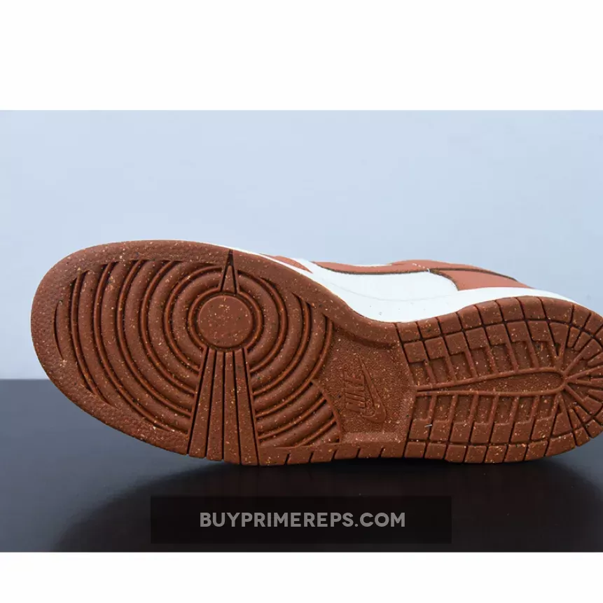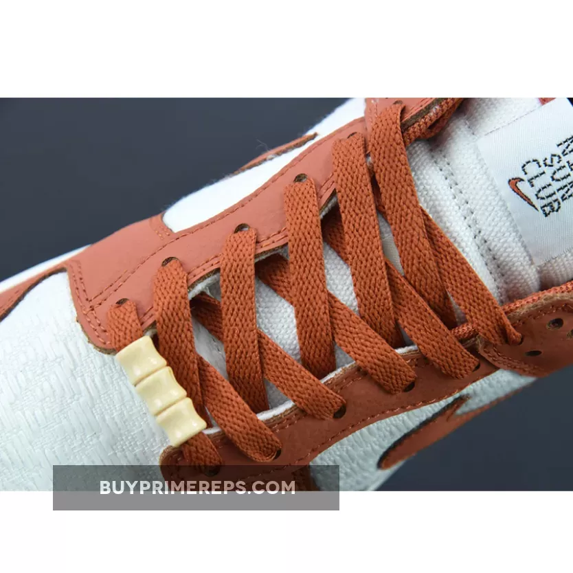 The upper of the Nike Dunk Low SE Sun Club Henna Brown is constructed with a combination of white woven thread and premium brown leather overlays. The woven thread can be seen on the toe box, mid-panel, and heel, giving the shoe a lightweight and breathable feel. Meanwhile, the brown leather overlays add a touch of luxury and durability to the design.