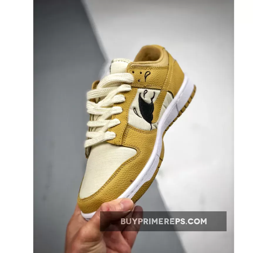 The Nike Dunk Low “Sun Club” White Yellow for Women, with the style code DV1681-100, is a vibrant addition to the “Sun Club” collection. This particular iteration of the iconic Nike Dunk Low silhouette showcases a cheerful and beach-inspired color scheme, evoking images of sunny days and sandy beaches. The shoe features a unique design with tan profile Swooshes that are accented with a black shark fin motif, giving the impression of sea waves and splashes of water. The base of the shoe is constructed from a hemp-like material, with white dominating most of the upper and tan accents at the throat. The overlays are made from pebbled leather in a mustard-tan hue, adding a premium touch to the design.
