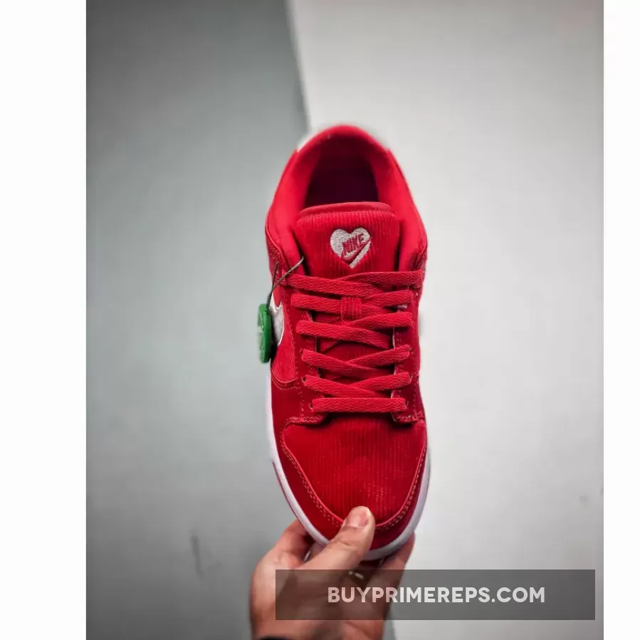 The upper of the shoe is primarily constructed from corduroy and suede in a fiery red hue. The contrasting white accents on the Swoosh logos, heel tabs, heart-shaped branding, and midsole provide a striking visual contrast. But what truly adds a touch of endearment to this sneaker is the special tag on the heels, which resembles a Valentine’s Day card. The tag features the inscription “To: You,” accompanied by a heart and the iconic Nike Swoosh logo, symbolizing “Love Nike.”