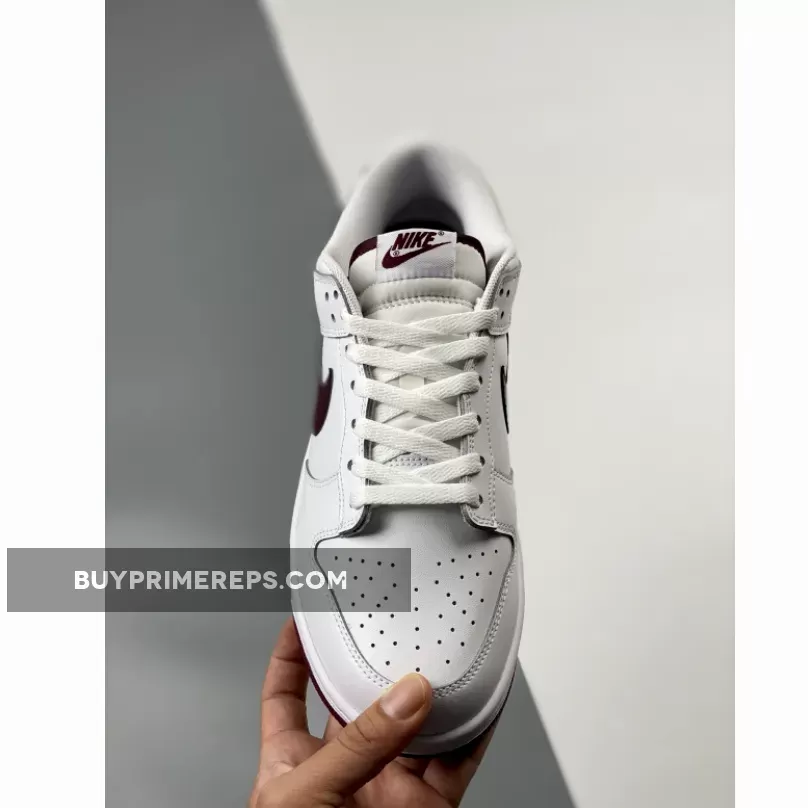 In terms of branding, the Nike Dunk Low White Night Maroon features the iconic Nike logo on the tongue tabs and heels, adding a touch of authenticity and class to the design.