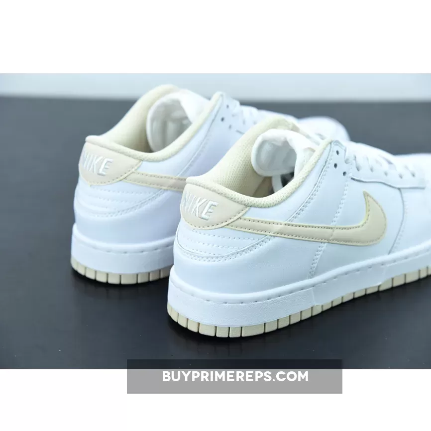 The Nike Dunk Low White Pearl features a predominantly white upper crafted from smooth leather, giving it a clean and polished look. The white midsole, laces, and tongue seamlessly blend with the upper, creating a monochromatic aesthetic that is both sleek and stylish. But it’s the subtle details that set this sneaker apart.
