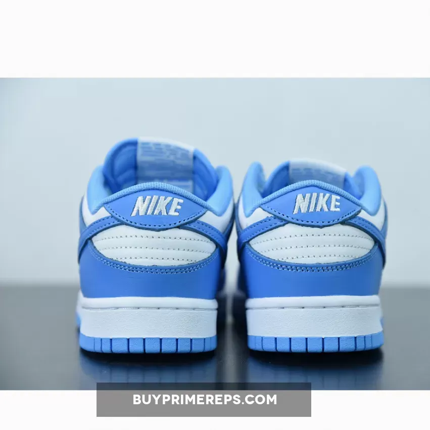 One of the standout features of this Dunk Low iteration is the use of University Blue, a color reminiscent of Michael Jordan’s alma mater, the University of North Carolina. The University Blue hue is prominently featured on the Swoosh logo, as well as on the inner lining, laces, tongue tags, heels, and rubber outsole. This colorway pays homage to the rich basketball heritage of UNC and adds a touch of nostalgia to the design.