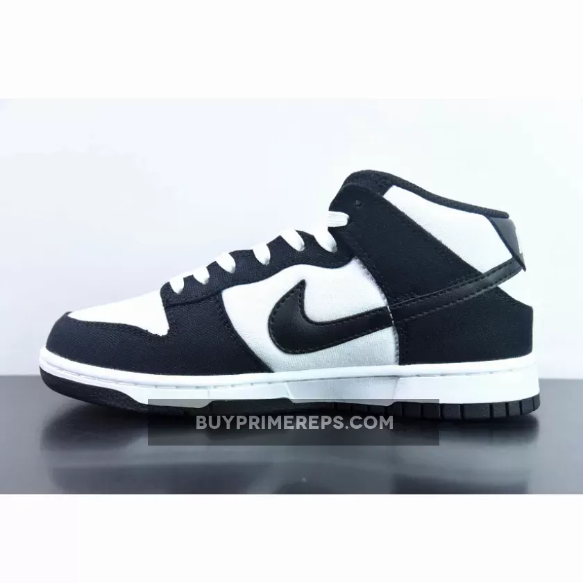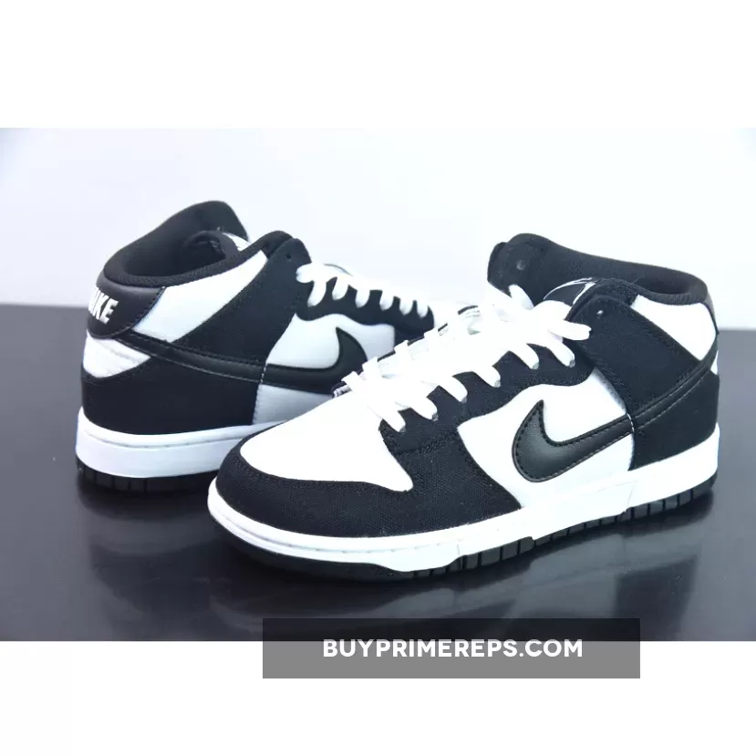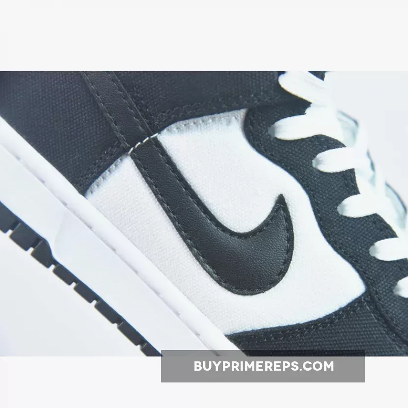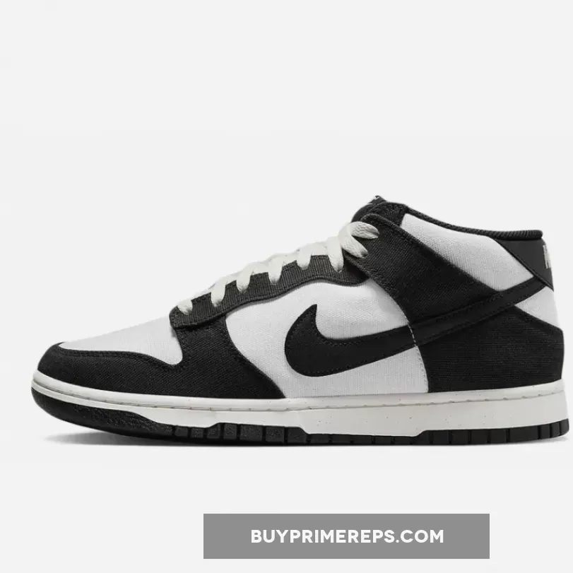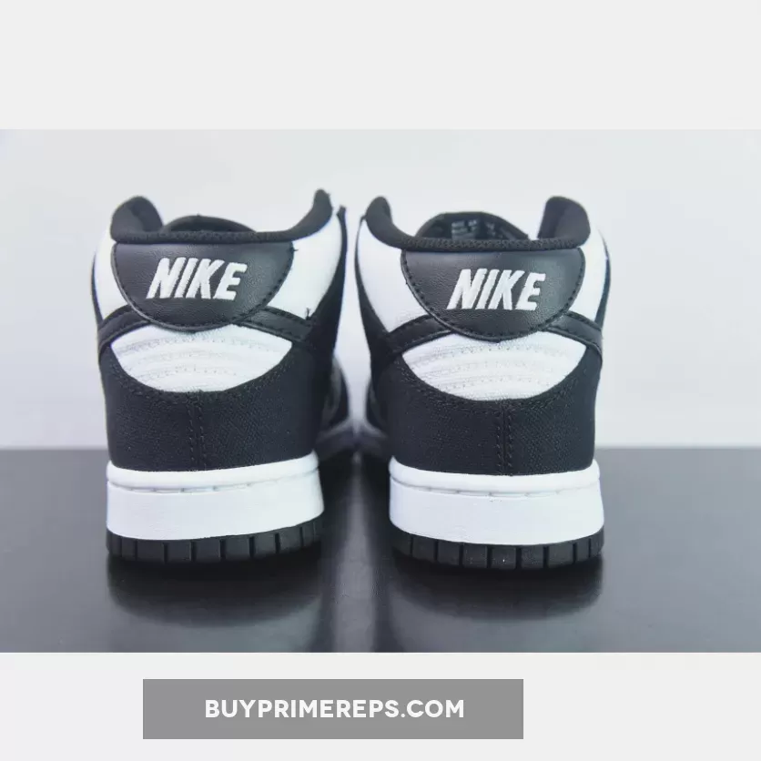 The standout feature of this Dunk Mid is its all-canvas upper, which gives the shoe a rugged and textured look. While the “Panda” colorway is usually seen on leather versions of the Dunk, Nike has opted for a canvas finish this time, adding a unique twist to the popular design. The black and white color blocking is clean and simple, making it easy to pair these sneakers with any outfit.